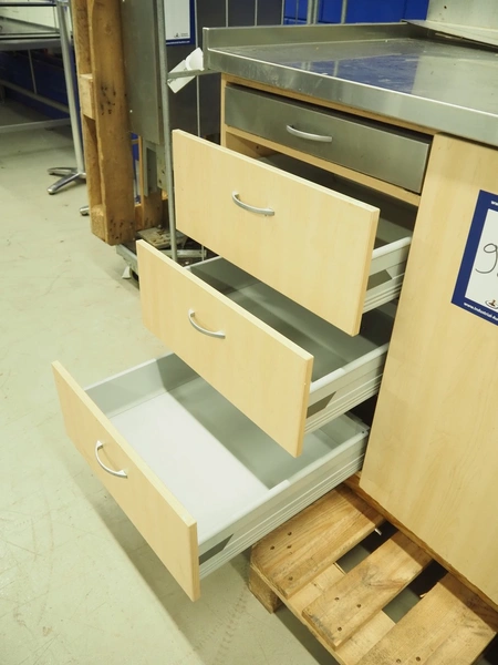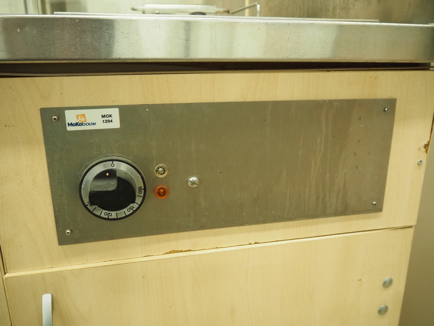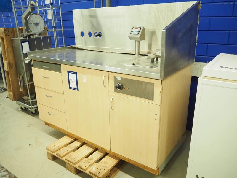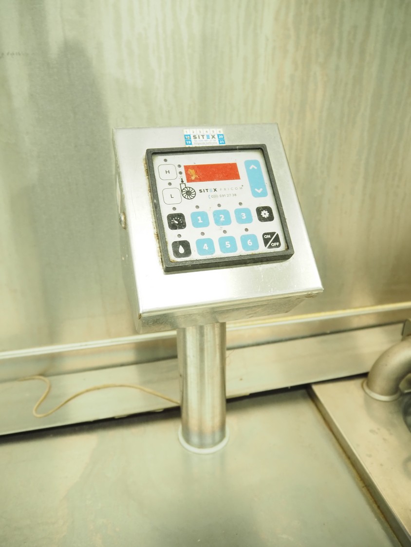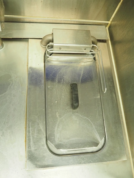 Sitex fryer with counter, s/s top, inside dimensions fryer: 410 mm x 210 mm x 200 mm, total dimensions: 1750 mm x 800 mm x 1500 mm.