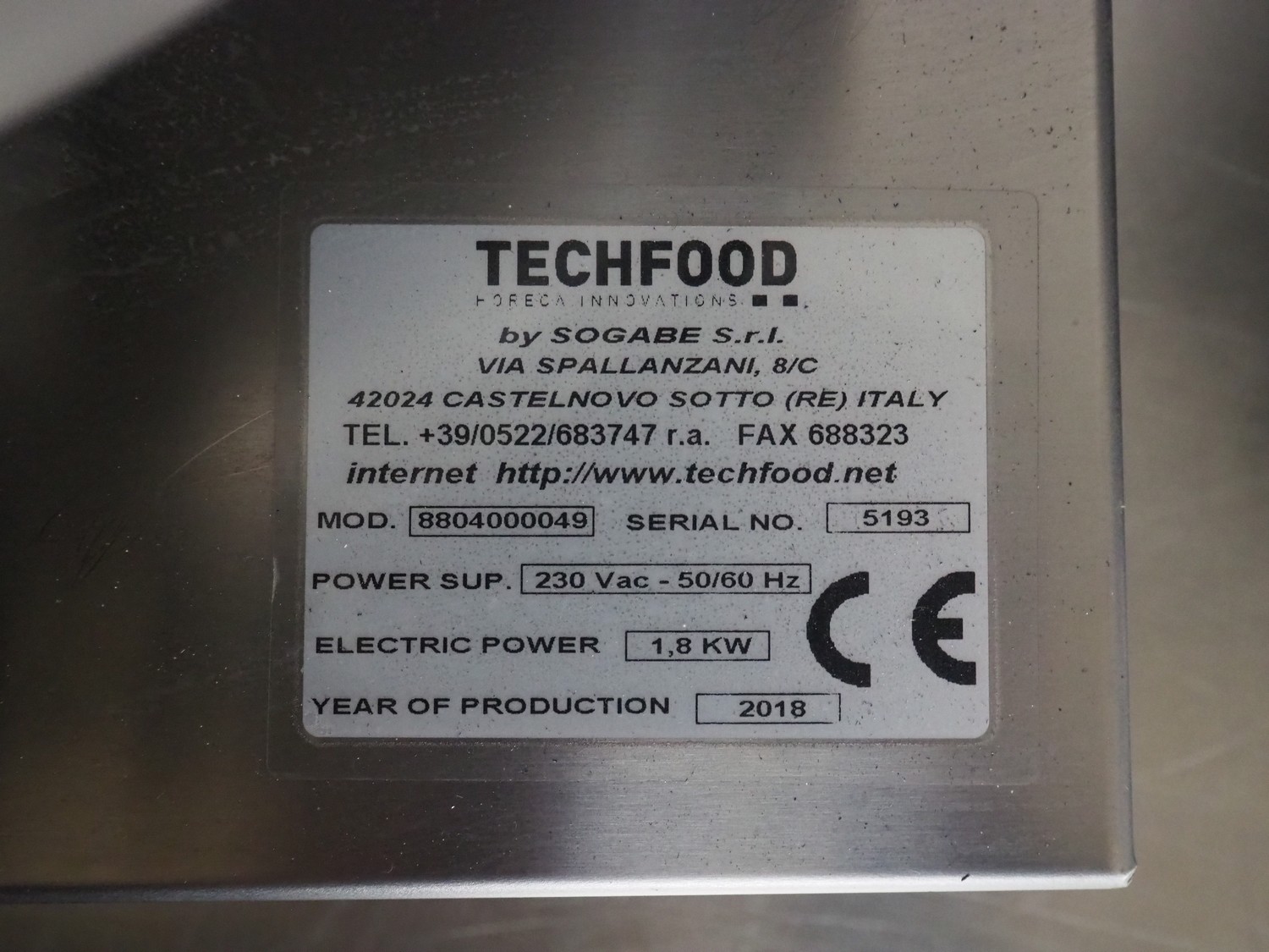 TECHFOOD commercial crepe maker 30cm, model: 8804000049, serial number: 5193, year of construction: 2018, 230 Vac, 50/60 Hz, 1.8 kW, dimensions: 350 mm x 510 mm x 320 mm.