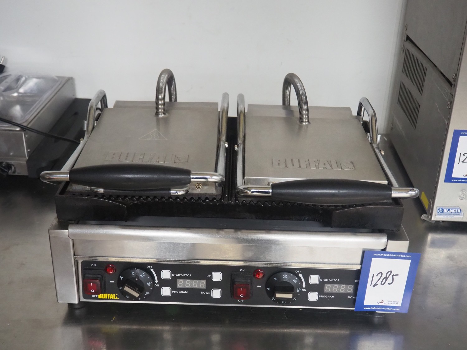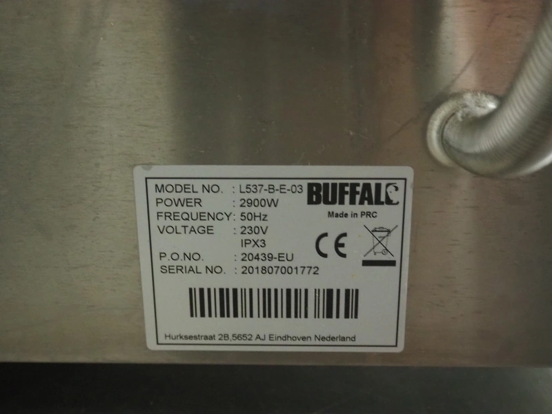 Buffalo double grill, model: L537-B-E-03, serial number: 201807001772, 230 V, 50 Hz, 2900 W, dimensions: 480 mm x 400 mm x 240 mm.