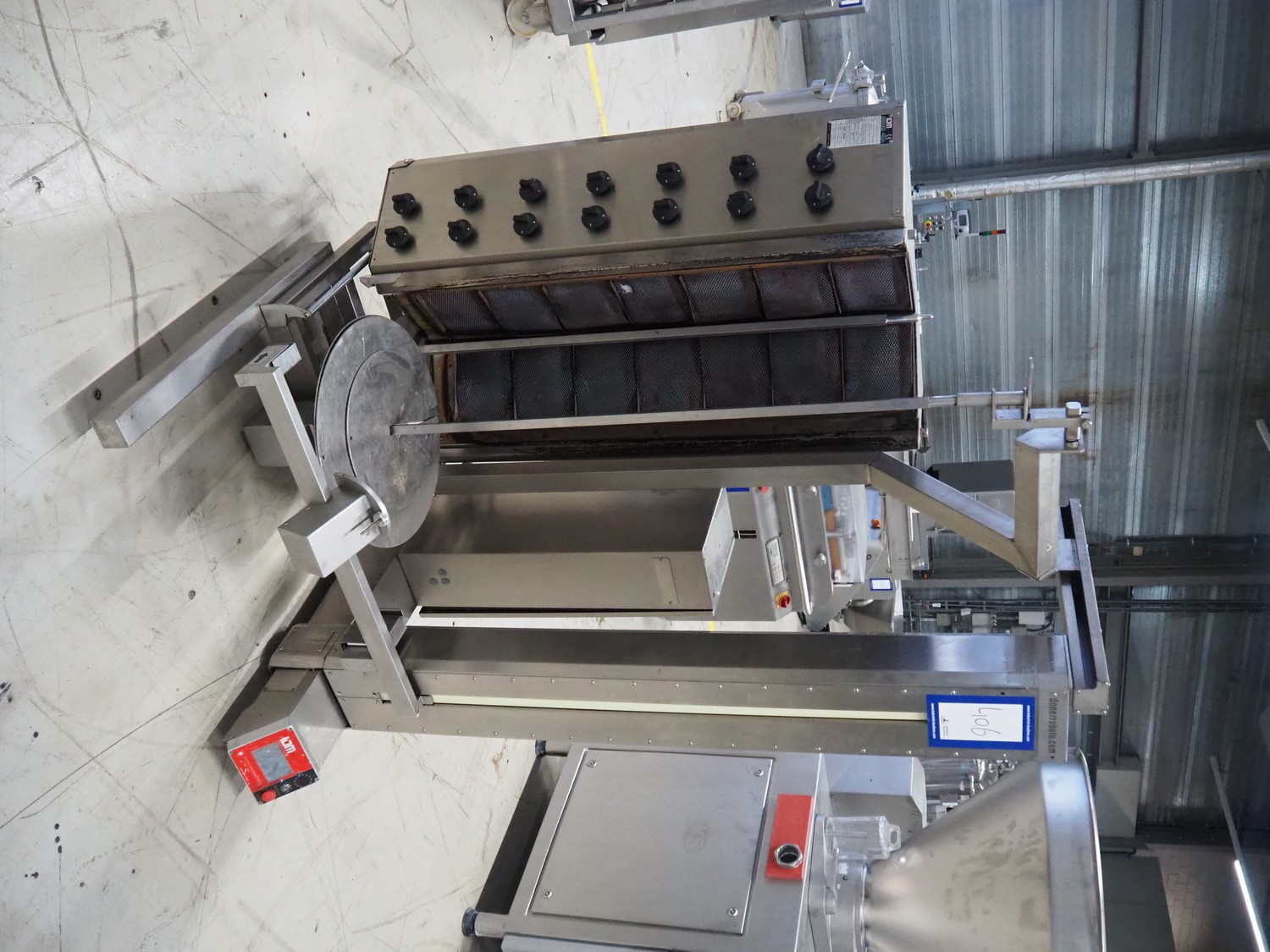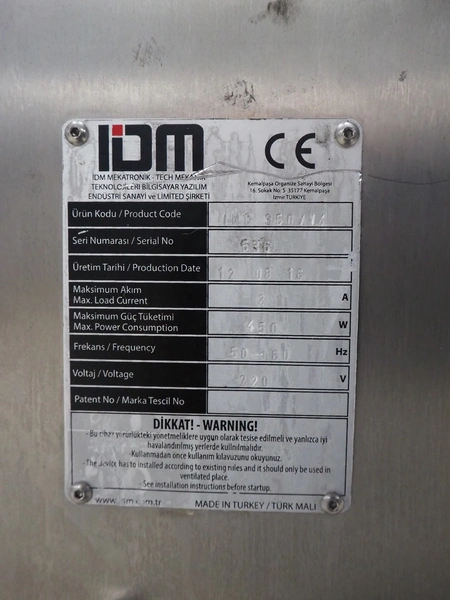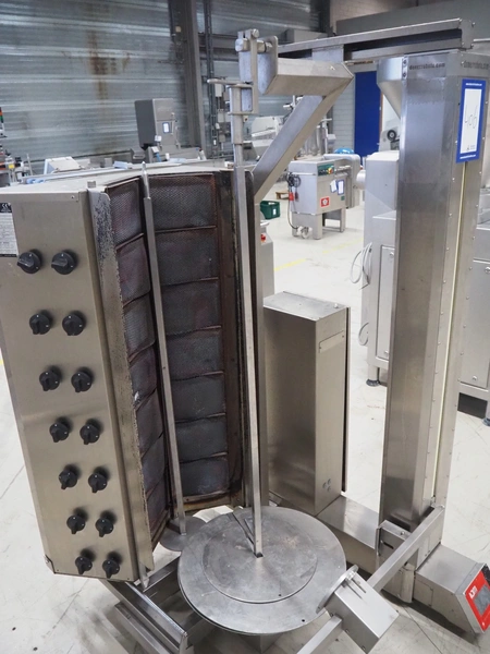 IDM kebab grill, model: IDM 2R07, serial number: 536, year of construction: 12/08/16, 220 V, 50/60 Hz, 2 A, 450 W, clearance: Ø 500 mm x 1100 mm, total dimensions: 1150 mm x 1100 mm x 1800 mm.