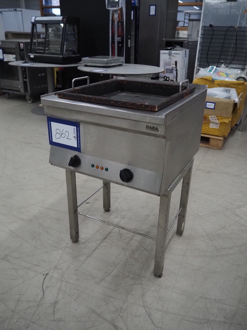 Haka frying pan, type: EBT600, year of construction: 09/2014, 400 V, 3 Ph, 6 kW, dimensions: 650 mm x 600 mm x 1000 mm.