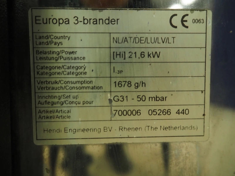 Hendi Engineering BV bbq grill, 21.6 kW, gas heated, dimensions grill: 1100 mm x 450 mm, total dimensions: 1260 mm x 1000 mm x 1560 mm.