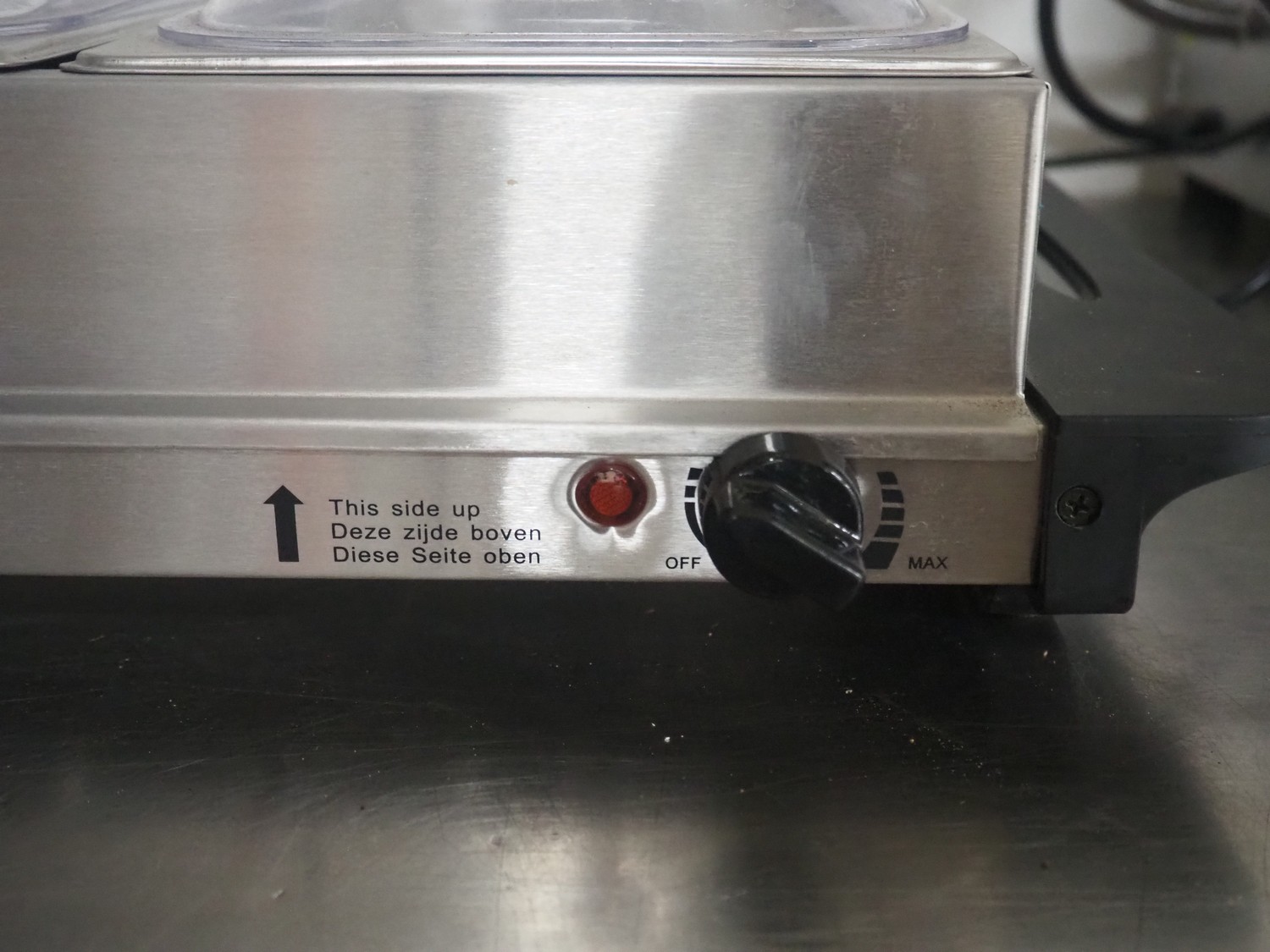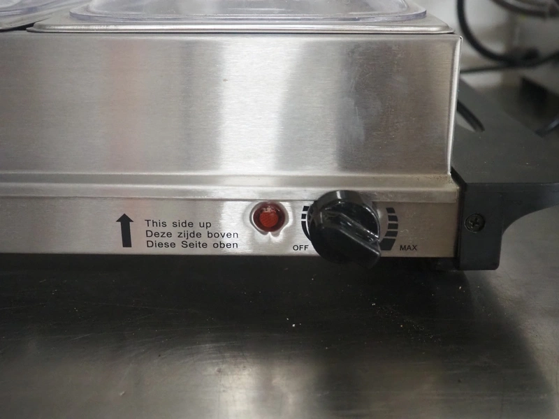 Chafing dish, dimensions: 650 mm x 360 mm x 150 mm.