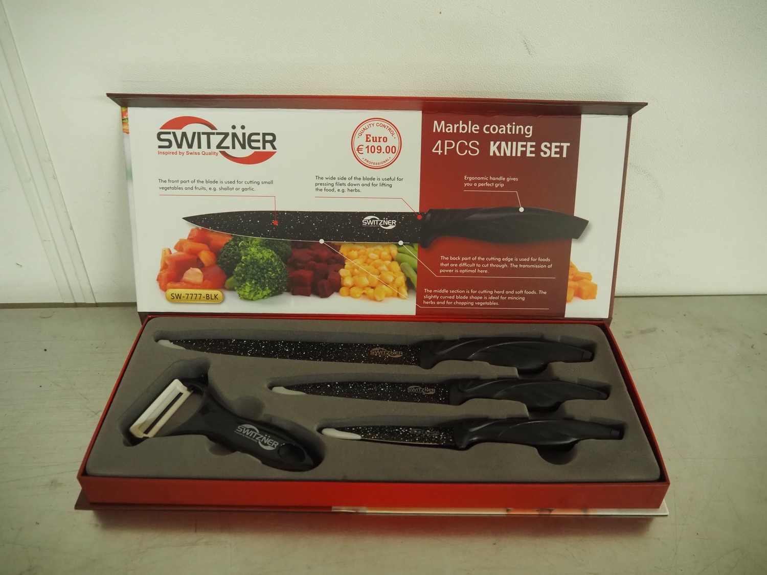 Switzner kitchen knife set, dimensions: 370 mm x 140 mm x 30 mm.