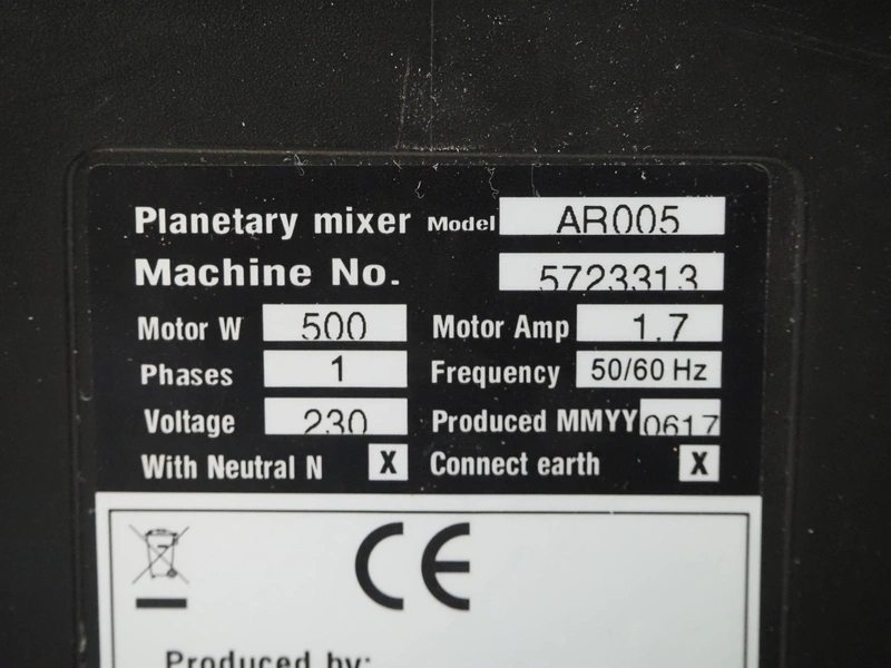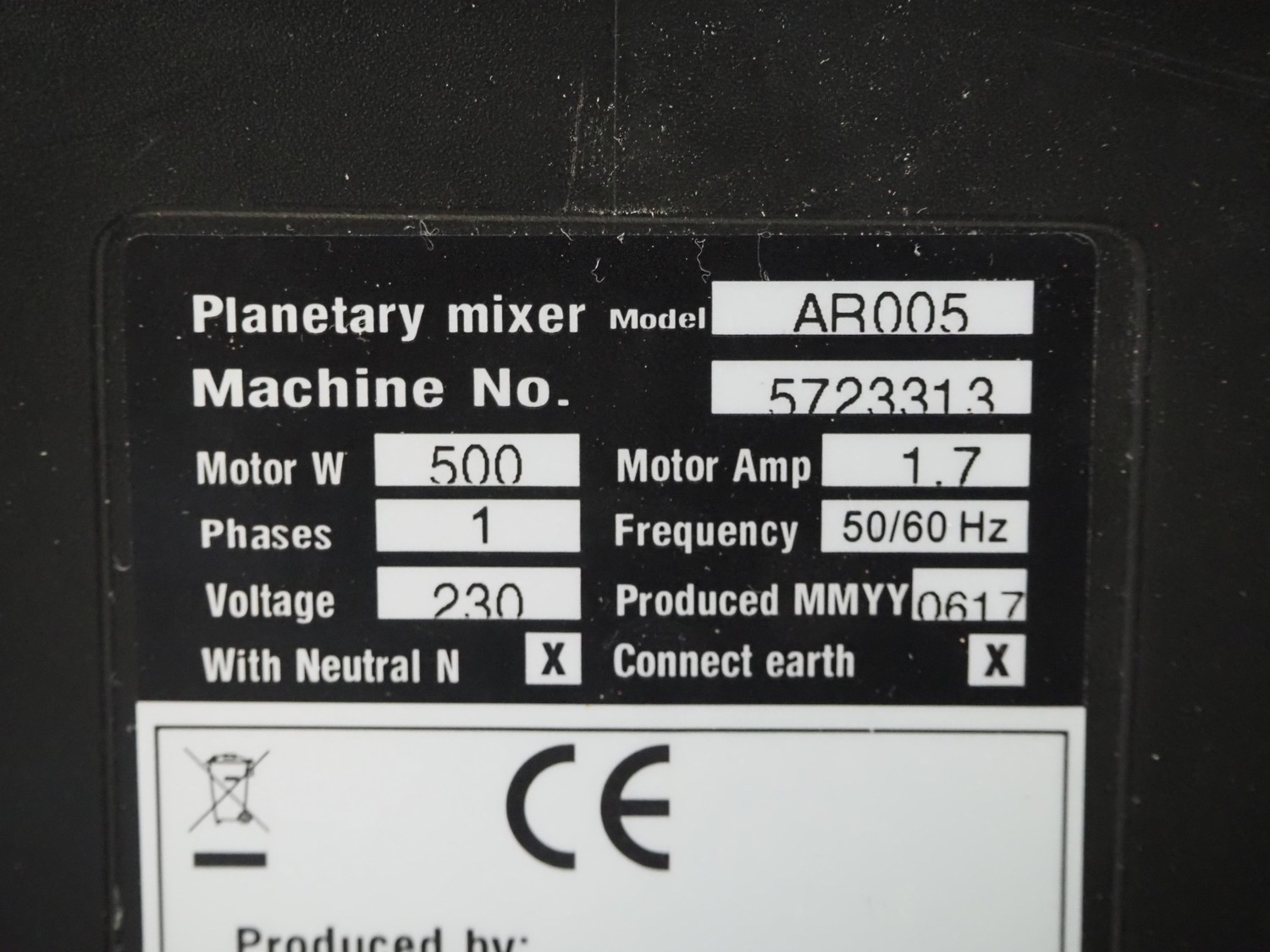 A/S Wodschow & Co mixer, model: AR005, machine number: 5723313, year of construction: 06-17, 230 V, 1 Ph, 50/60 Hz, 1.7 A, 500 W, dimensions: 370 mm x 270 mm x 450 mm. Without bowl.