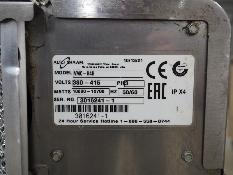 Alto Shaam oven, model: VMC-H4H, serial number: 3016241-1, year of construction: 2021, 380-415 V, 3 Ph, 50/60 Hz, 10800-12700 W, 4 floors, dimensions each floor: 500 mm x 370 mm x 120 mm, total dimensions: 900 mm x 500 mm x 1100 mm.