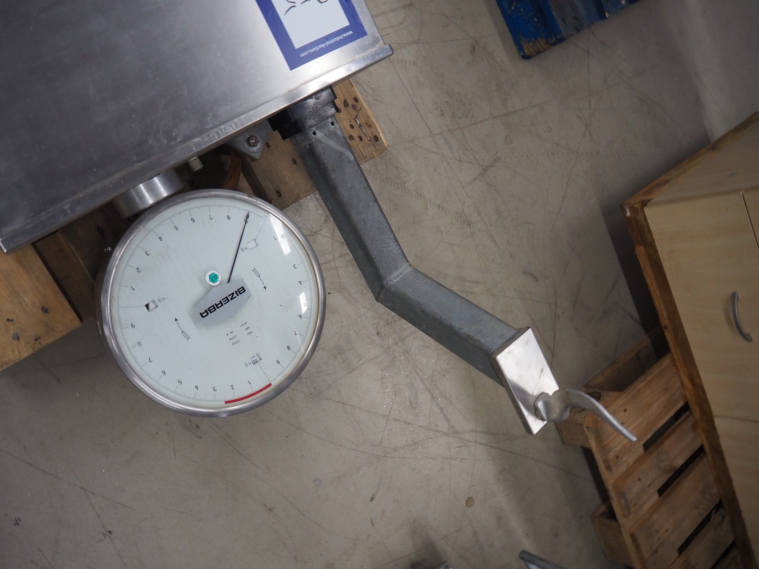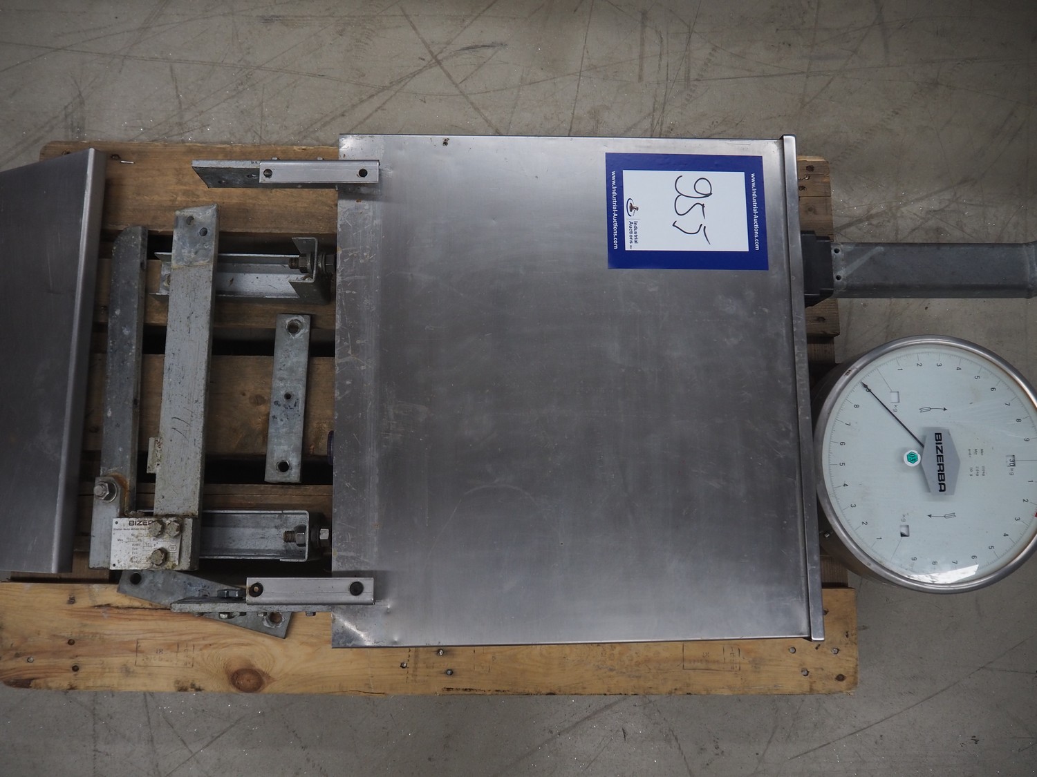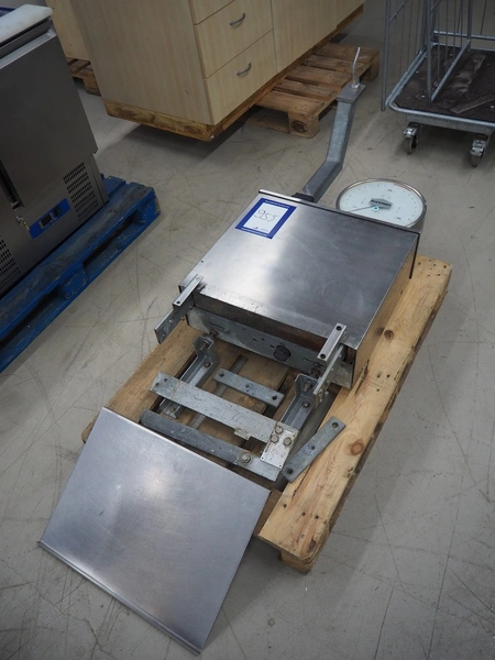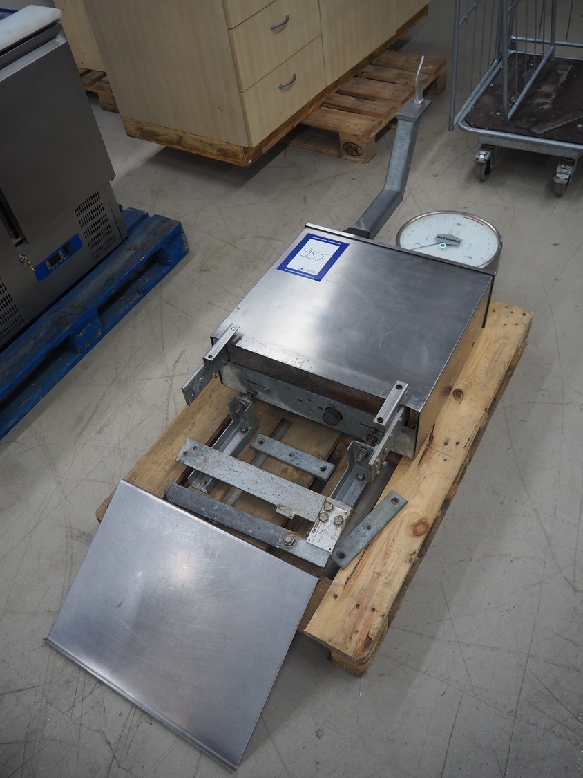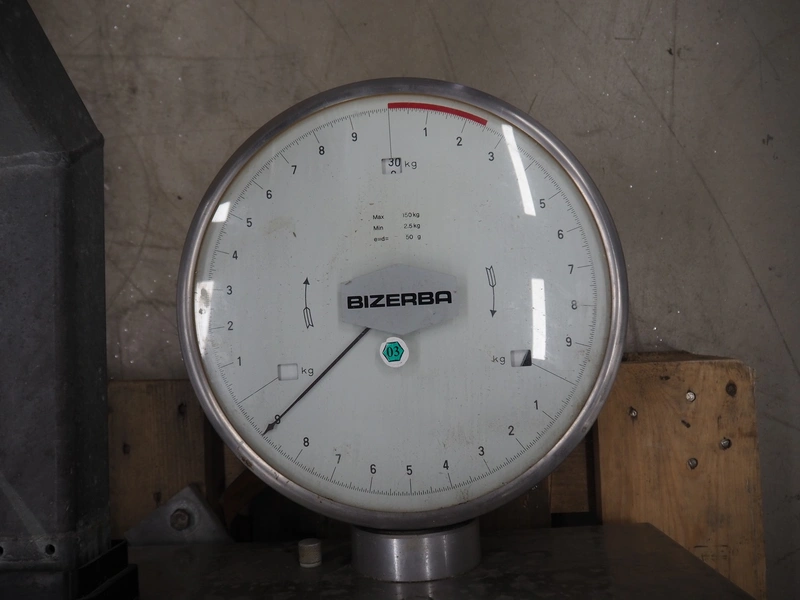 Bizerba weighing scale, number: 994205, weighing range: 2.5-30 kg, e=d= 50g, dimensions: 1250 mm x 600 mm x 250 mm.