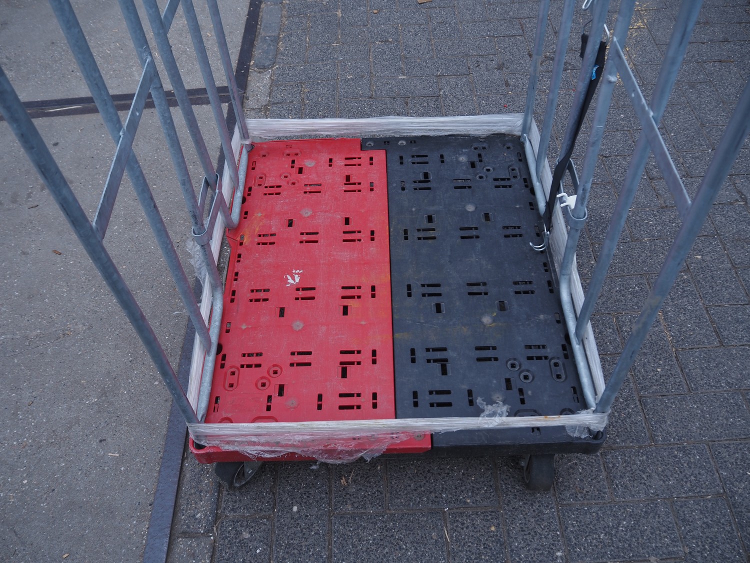 Container trolley, dimensions: 700 mm x 800 mm x 1700 mm.