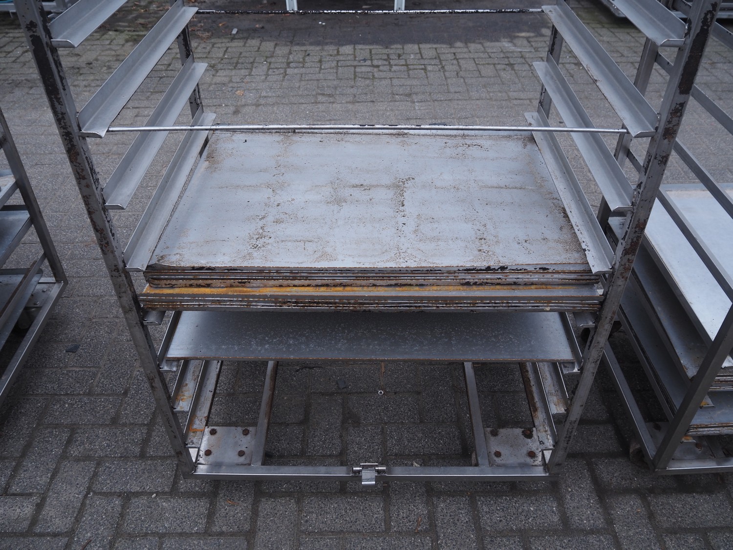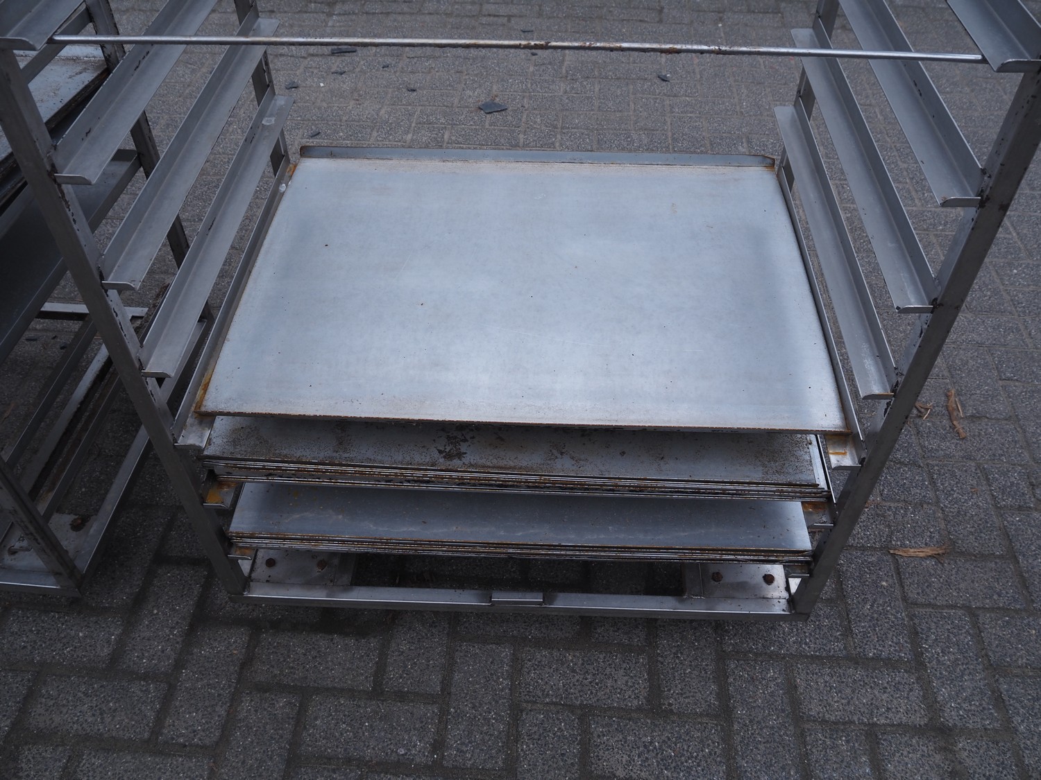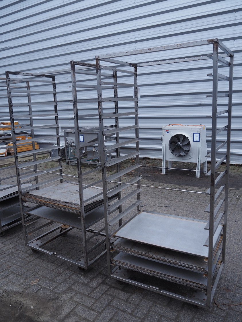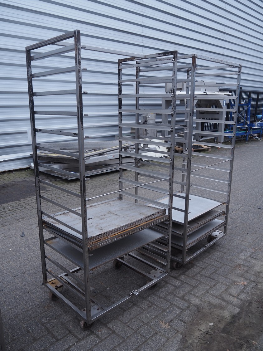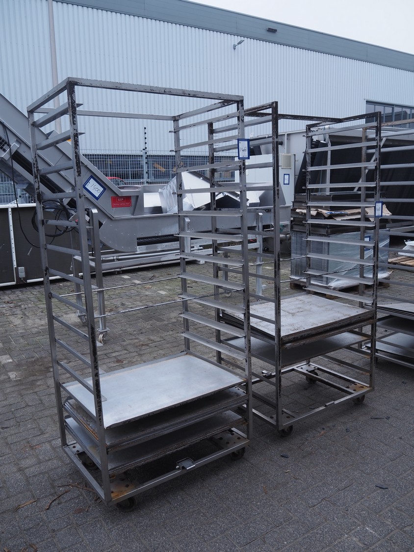 2 s/s trolleys, 14 floors each, floor dimensions: 810 mm x 630 mm, total dimensions: (2x) 870 mm x 650 mm x 1940 mm.