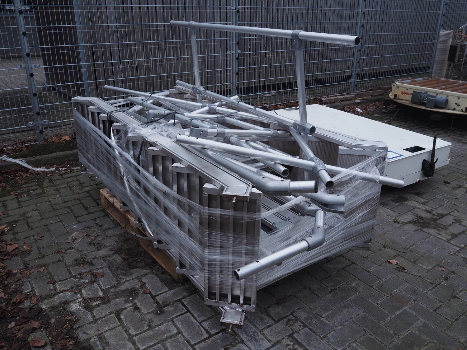 Aluminium platform, dimensions: 2800 mm x 1200 mm x 1350 mm.