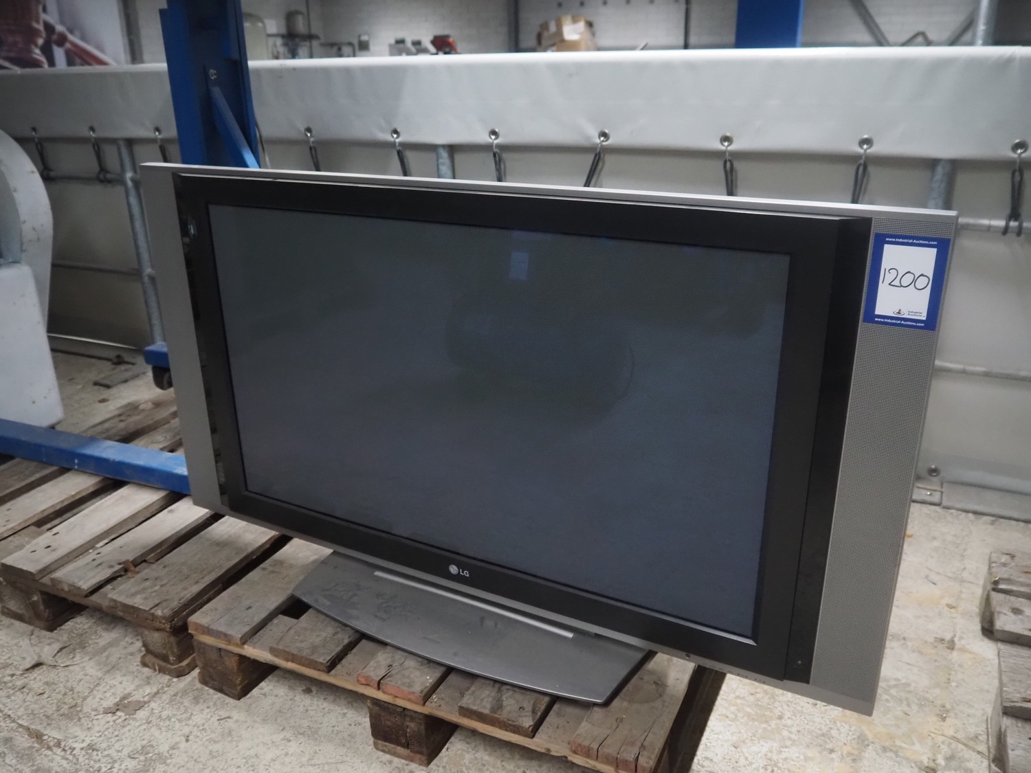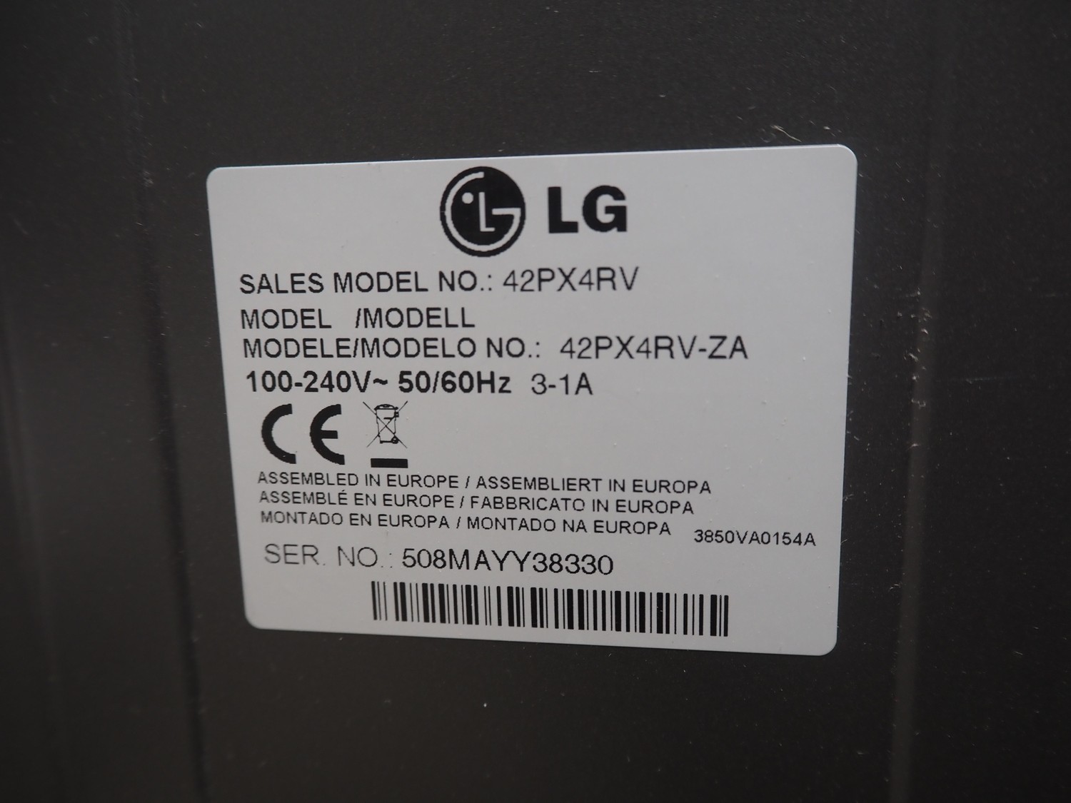 LG television, model: 42PX4RV, serial number: 508MAYY38330, 100-240 V, 50/60 Hz, dimensions: 1250 mm x 300 mm x 710 mm. Technical condition unknown.