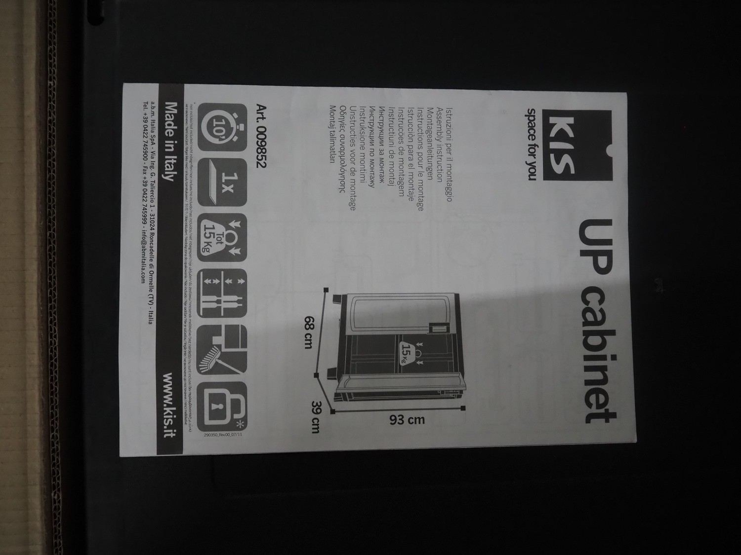 Kis cabinet, model: Up, dimensions: 680 mm x 390 mm x 930 mm, dimensions box: 800 mm x 400 mm x 300 mm.