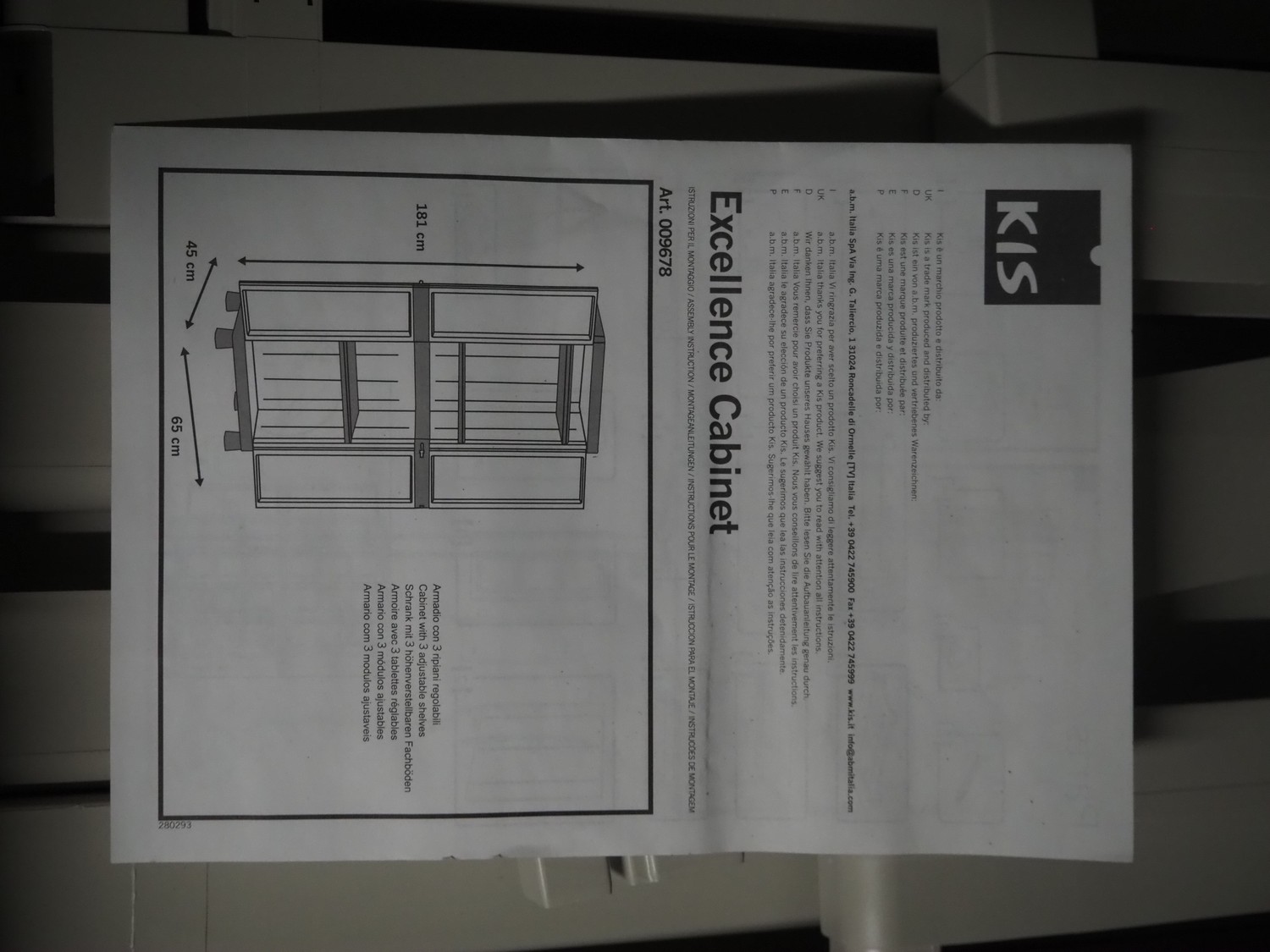 Kis cabinet, model: Excellence, dimensions: 650 mm x 450 mm x 1810 mm, dimensions box: 800 mm x 400 mm x 550 mm.