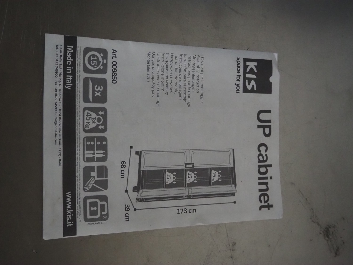 KIS plastic cabinet, dimensions: 680 mm x 390 mm x 1730 mm, box dimensions: 800 mm x 400 mm x 300 mm.