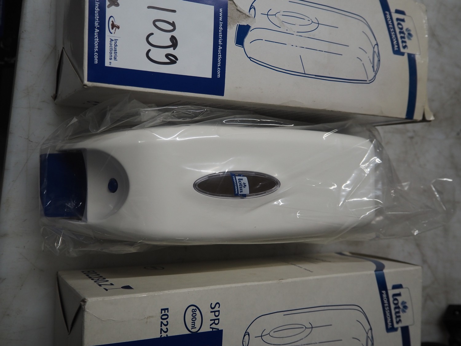 3 Lotus soap dispensers, dimensions: (3x) 110 mm x 110 mm x 300 mm.