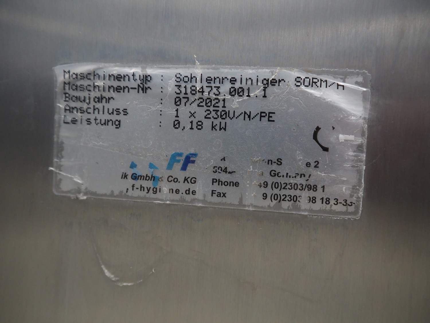 Kohlhoff sole cleaner, type: Sohlenreiniger SORM/H, machine number: 318473.001.1, year of construction: 07/2021, 230 V, 1 Ph, 0.18 kW, brush length: 300 mm, total dimensions: 550 mm x 530 mm x 1020 mm.