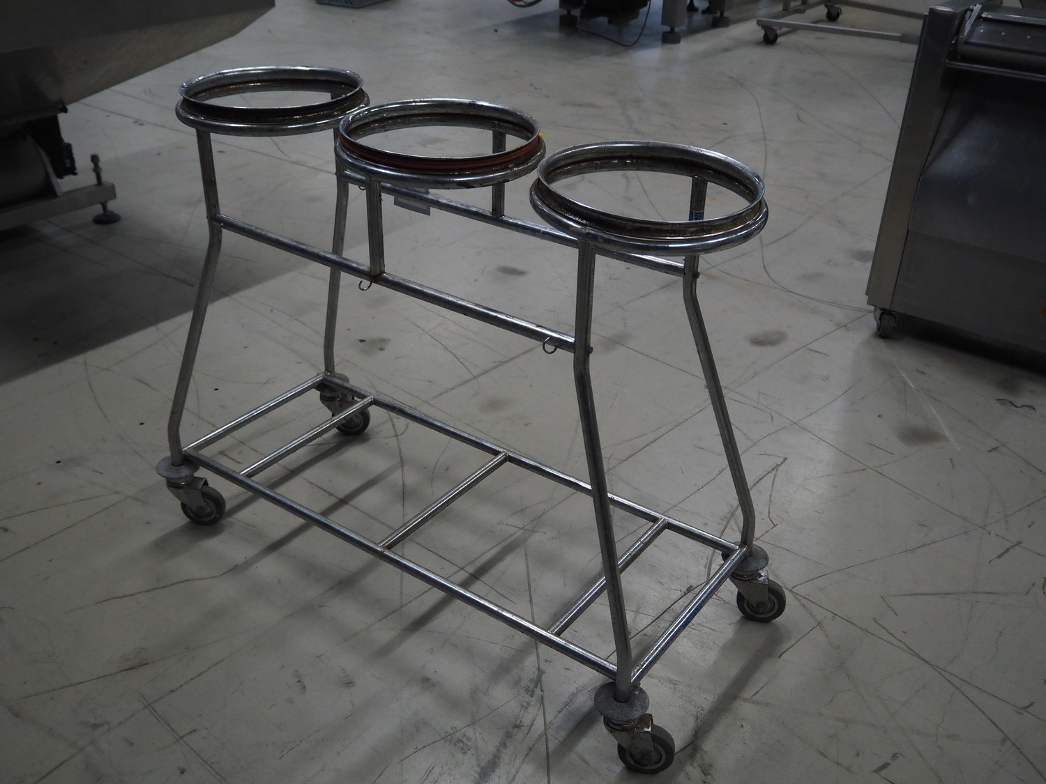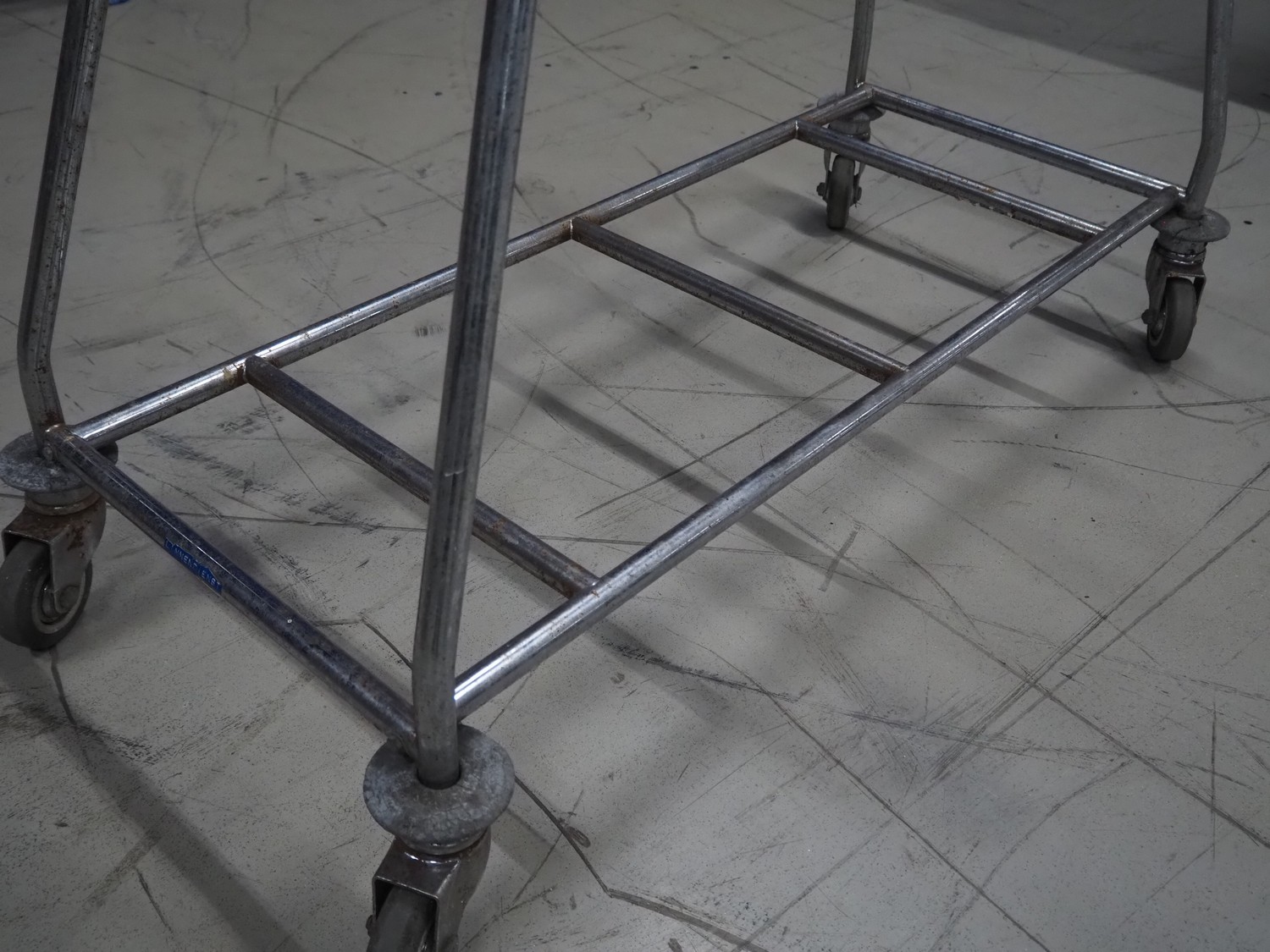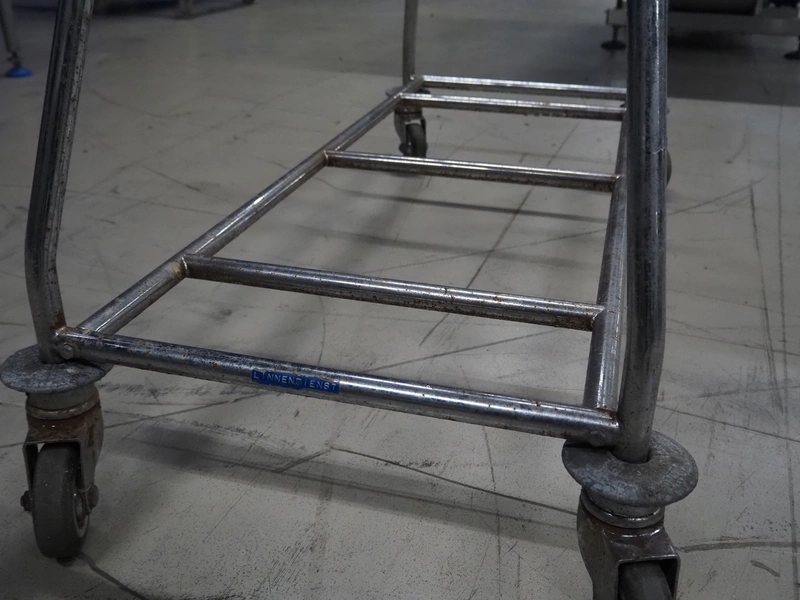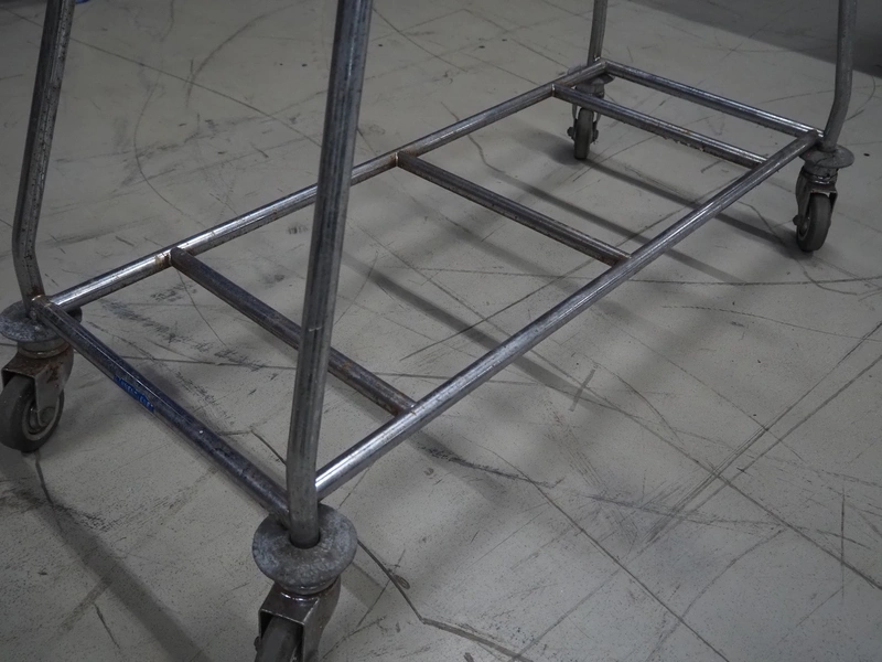 S/s waste bag trolley, dimensions: 1200 mm x 580 mm x 99 mm.
