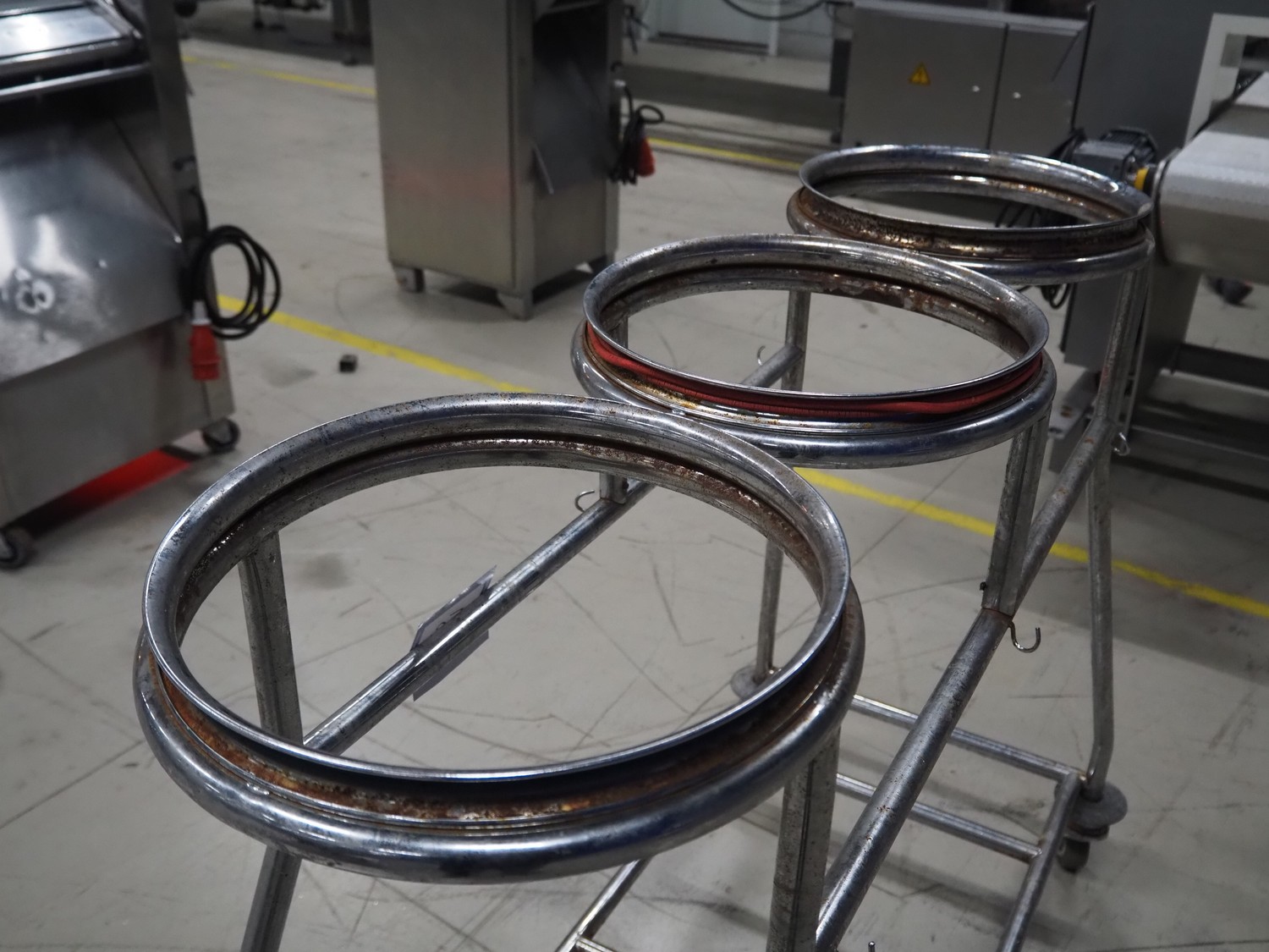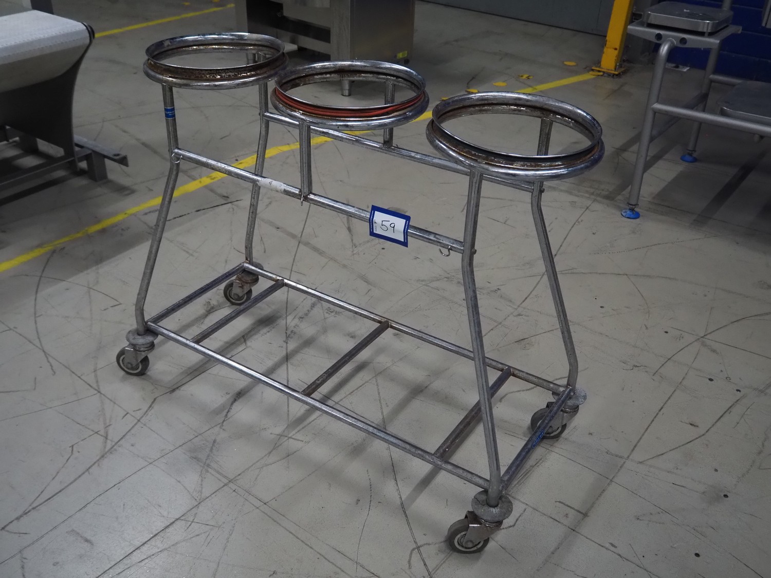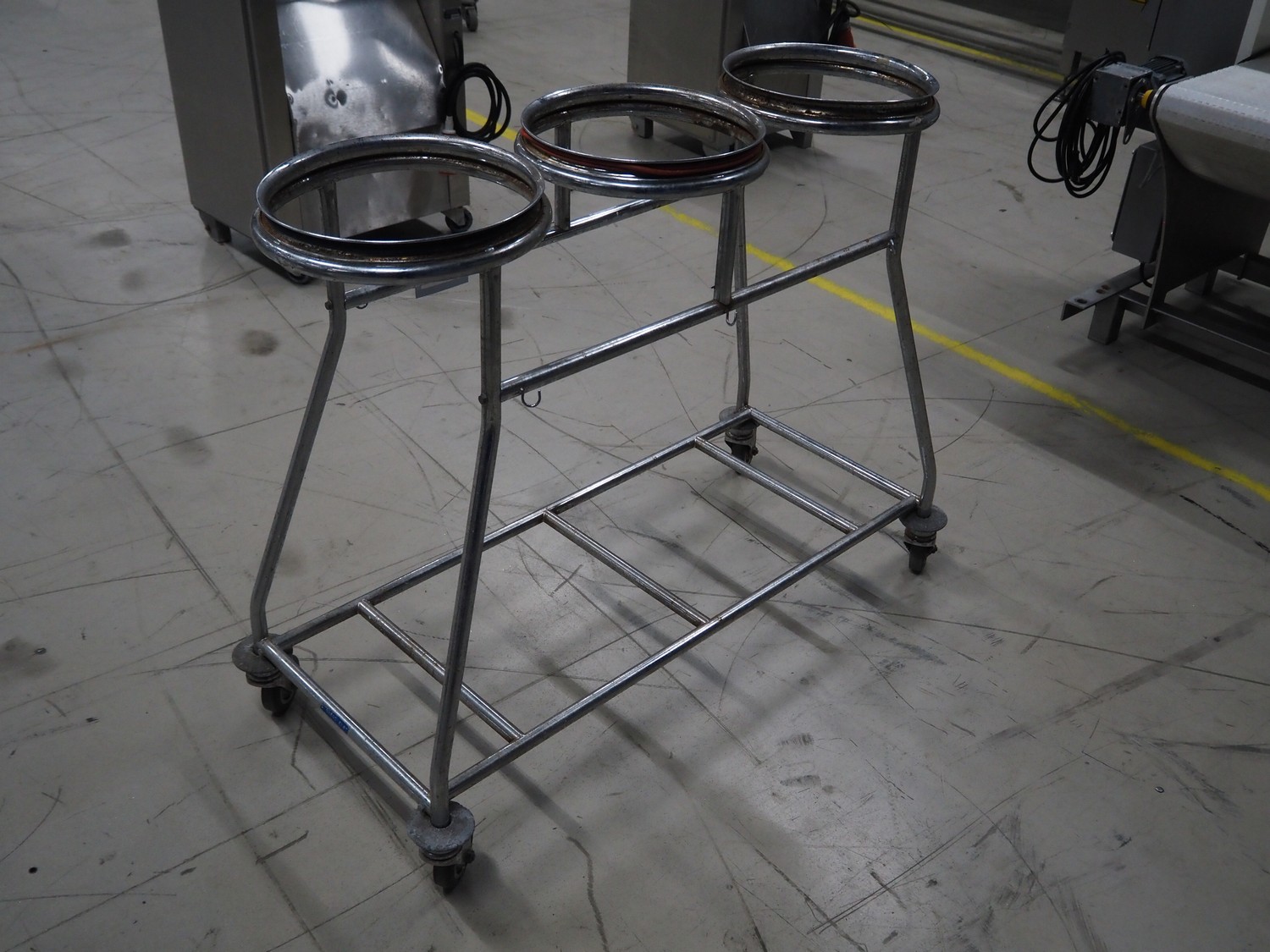 S/s waste bag trolley, dimensions: 1200 mm x 580 mm x 99 mm.