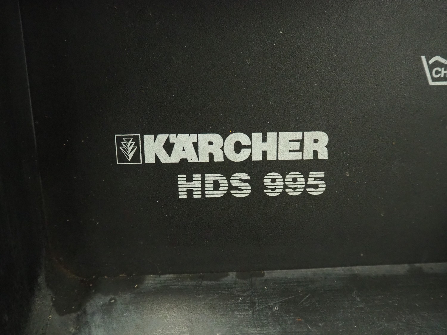 Kärcher mobile high pressure cleaner, type: HDS 995, number: 150572, year of construction: 2002, 400 V, 3 Ph, 50 Hz, 6.8 kW, dimensions: 1400 mm x 600 mm x 900 mm.