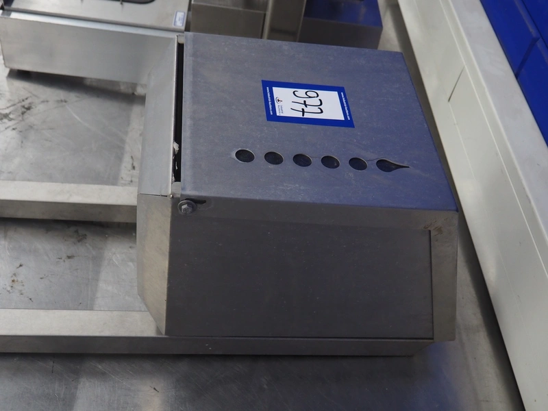 S/s paper dispenser, dimensions: 340 mm x 300 mm x 750 mm.