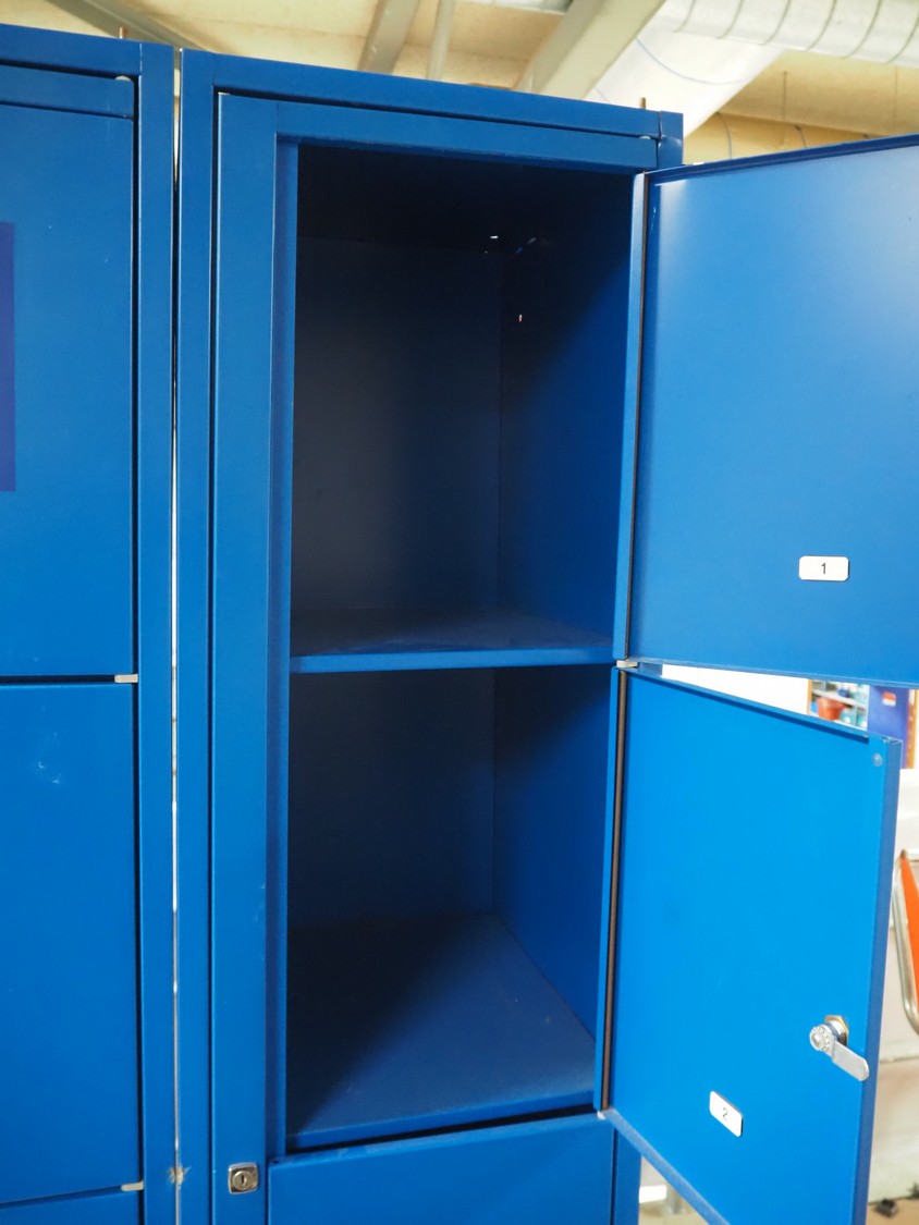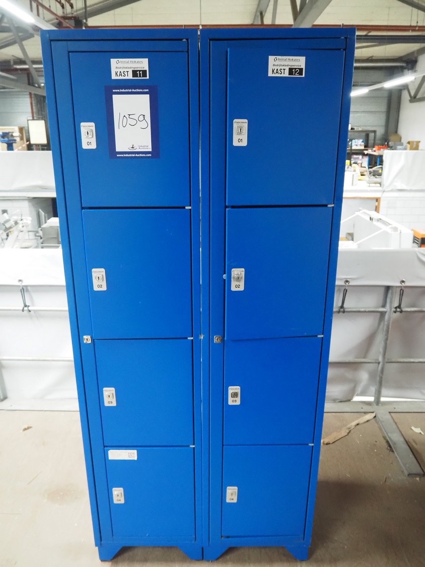 2 steel 4-door Initial Hokatex lockers, dimensions: (2x) 500 mm x 420 mm x 1900 mm. Without keys.