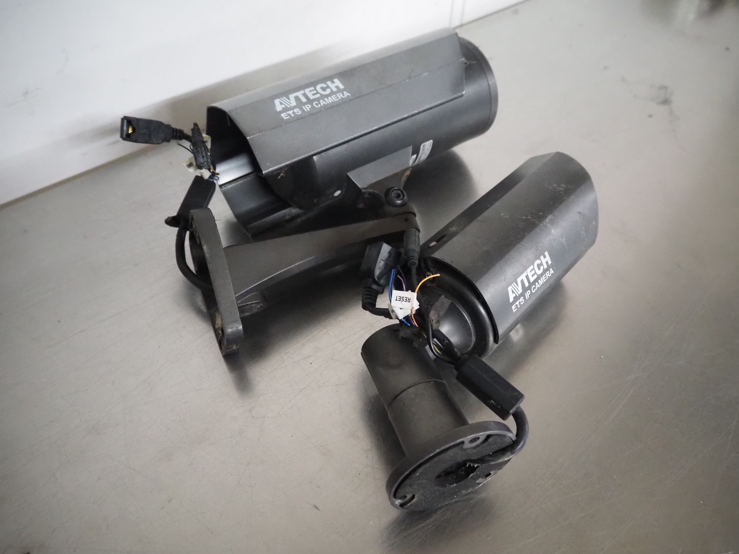 2 Avtech security cameras, dimensions: 240 mm x 120 mm x 410 mm and 260 mm x 90 mm x 220 mm.