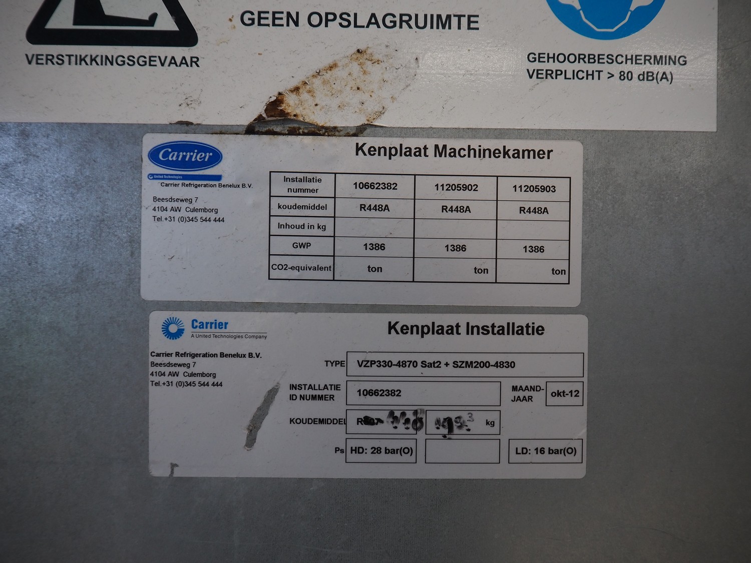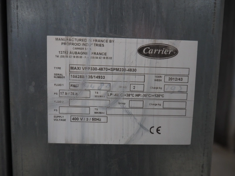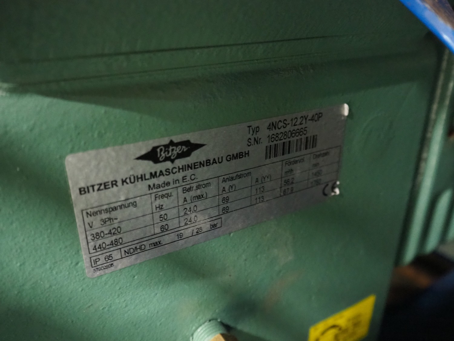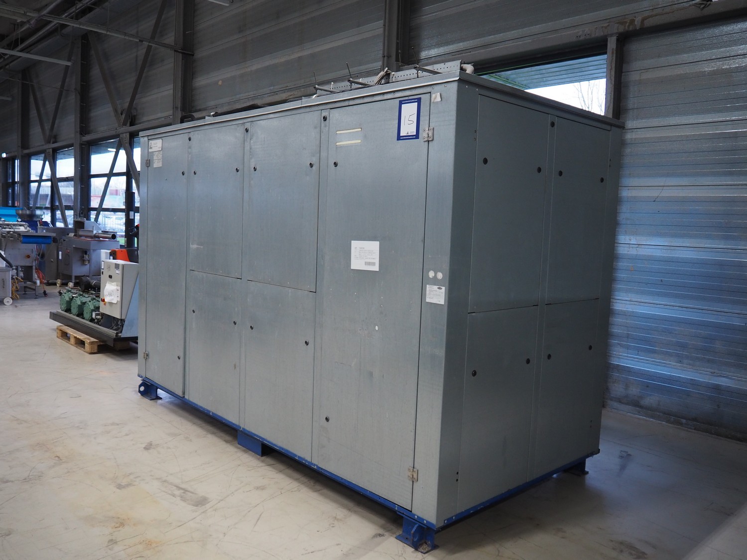 Bitzer Kühlmaschinenbau GmbH compressor rack in cabinet with 5 Bitzer Kühlmaschinenbau GmbH cooling compressors, type: 4NCS-12.2Y-40P, dimensions: 3600 mm x 1700 mm x 2500 mm.