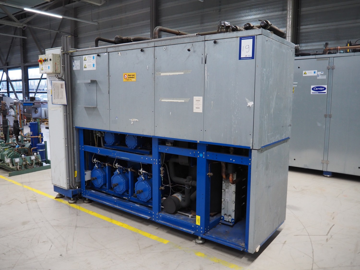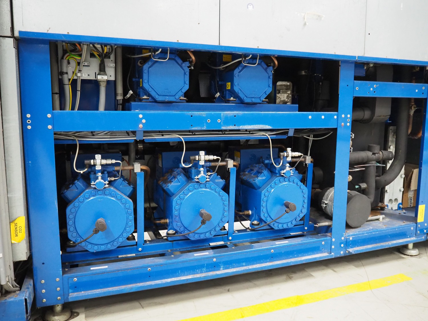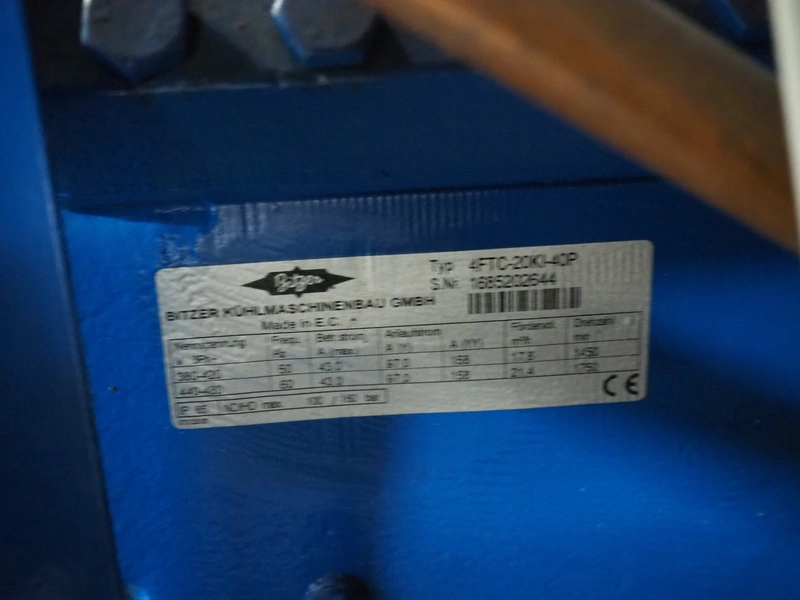 Bitzer Kühlmaschinenbau GmbH compressor rack in cabinet with 5 Bitzer Kühlmaschinenbau GmbH cooling compressors, type: 4FTC-20KI-40P, dimensions: 3200 mm x 1200 mm x 2400 mm.