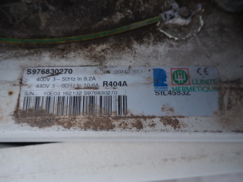 Silensys condenser with L'unite Hermetique cooling compressor, type: S976830270, serial number: 10E03 162132 S976830270, 400 V, 3 Ph, 50/60 Hz, 9.2/10.6 A, refrigerant: R404A, dimensions: 1050 mm x 1700 mm x 1500 mm.
