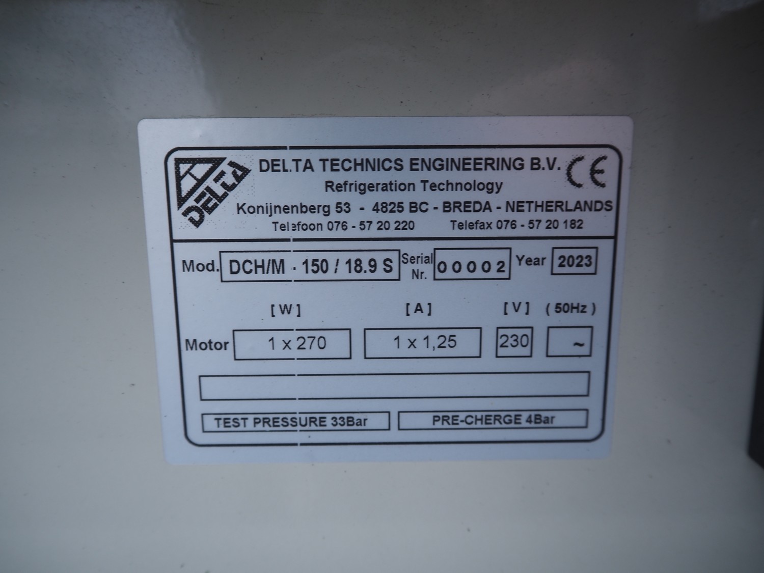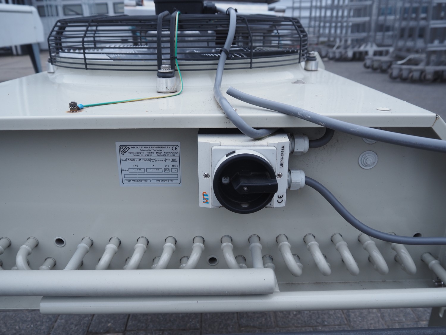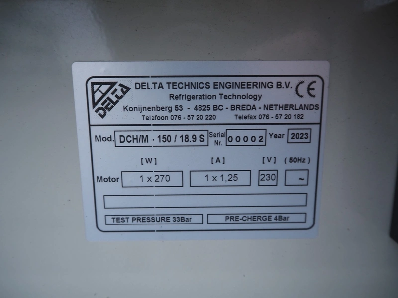 Delta Technics Engineering condenser, model: DCH/M-150/18.9S, serial number: 0002, year of construction: 2023, 230 V, 1.25 A, 270 W, dimensions: 900 mm x 850 mm x 900 mm.