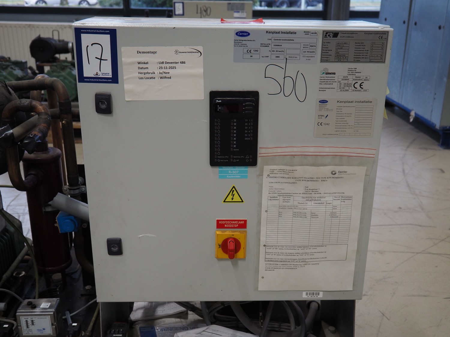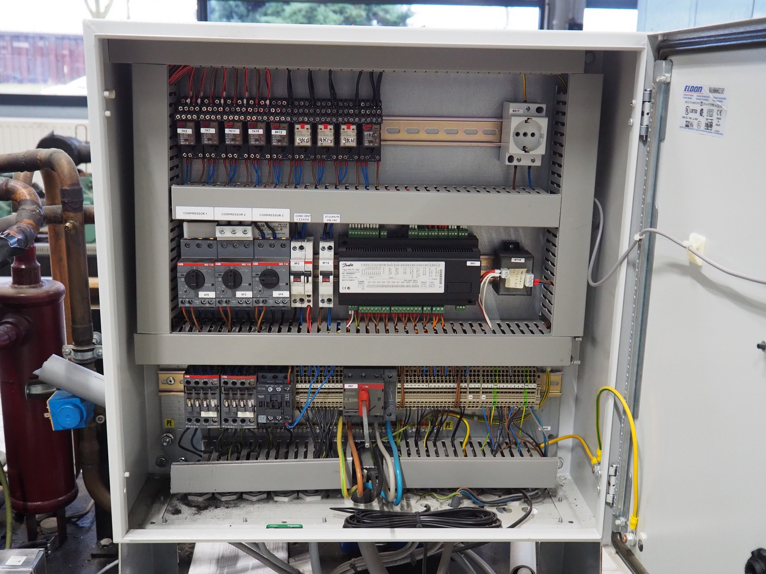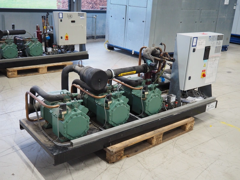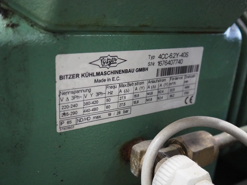 Bitzer Kühlmaschinenbau GmbH compressor rack in cabinet with 3 Bitzer Kühlmaschinenbau GmbH cooling compressors, type: (3x) 4CC-6.2Y-40S, capacity: 32.5/38.2 m³ per hour, dimensions: 900 mm x 2200 mm x 1100 mm.