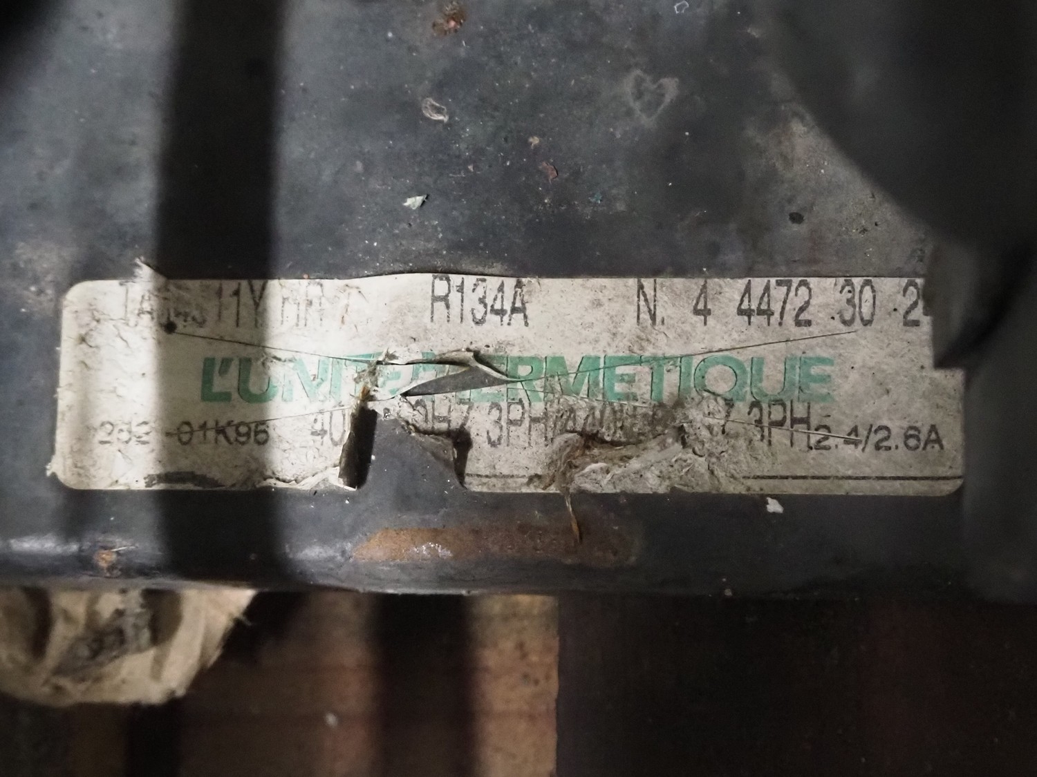 L'unite Hermetique cooling compressor, type: TAJ451, dimensions: 500 mm x 500 mm x 400 mm.
