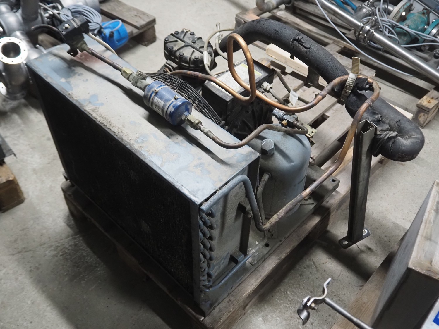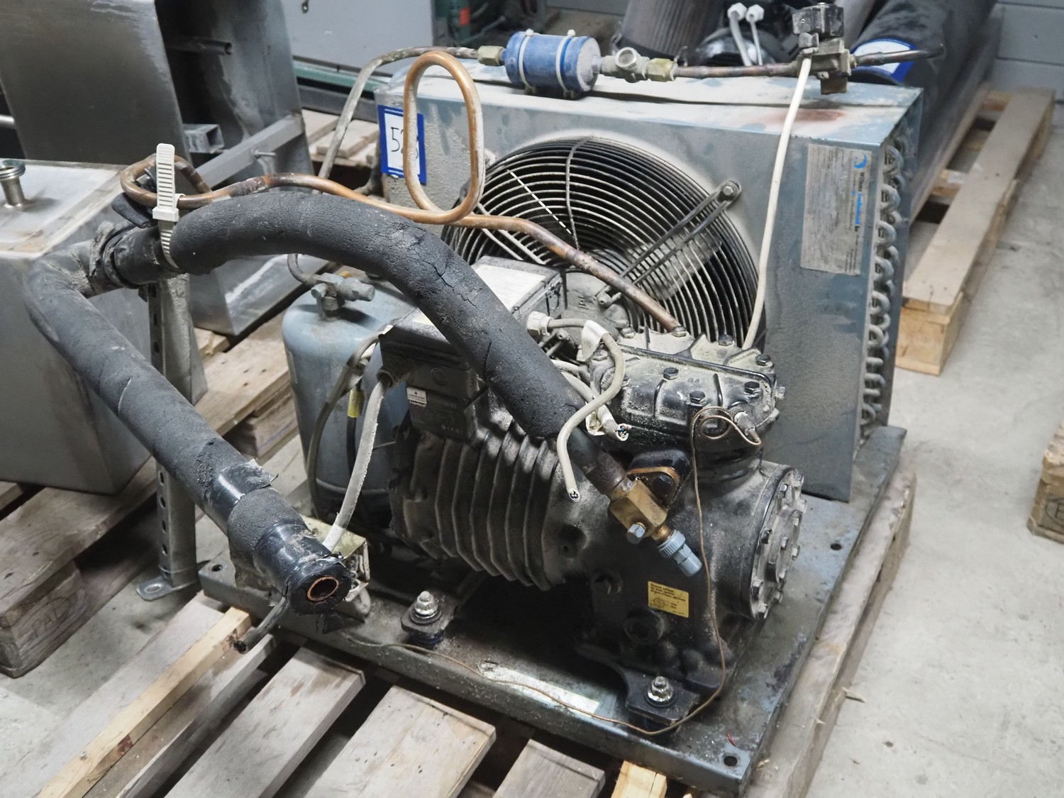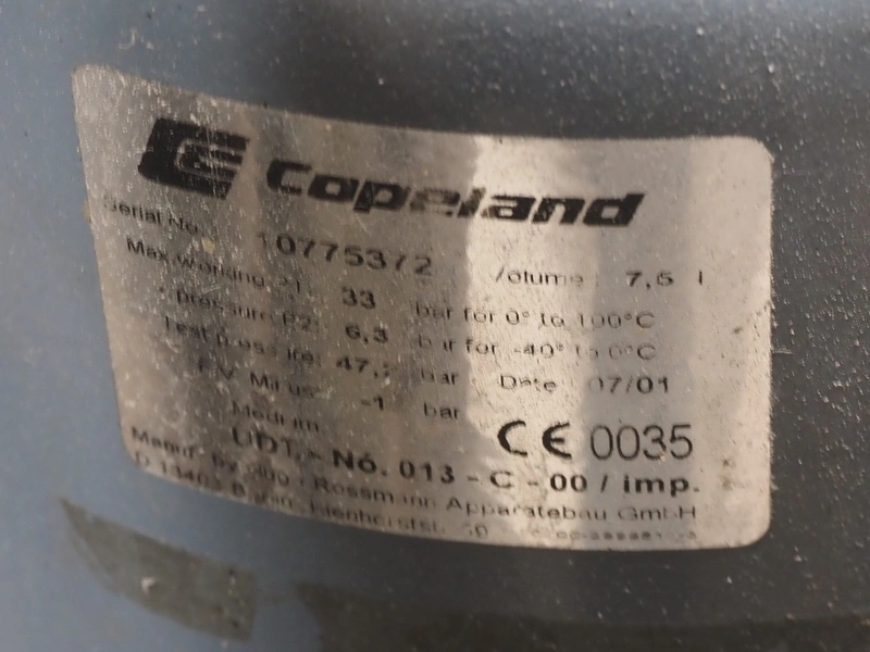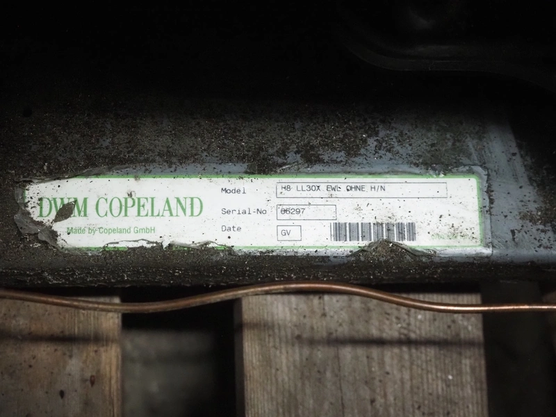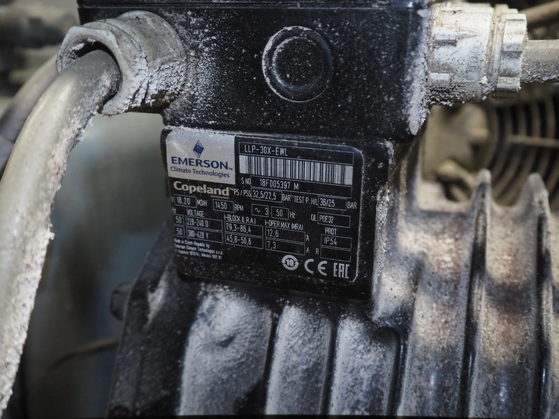 DWM Copeland cooling compressor, model: LLP-30X-EAL, serial number: 18F 005397 M, 220/240 V, 3 Ph, 50 Hz, 12.5 A, dimensions: 900 mm x 700 mm x 700 mm.
