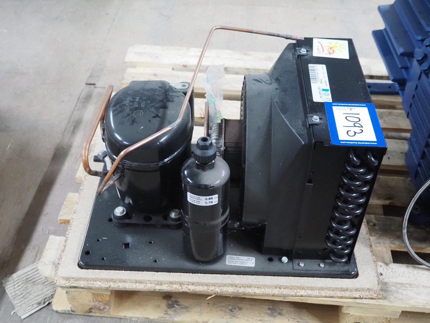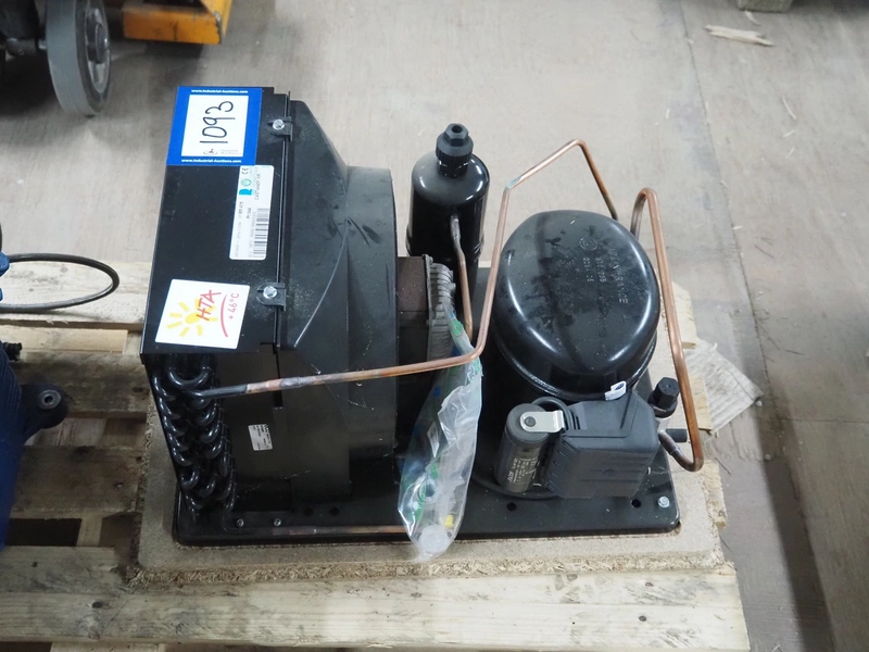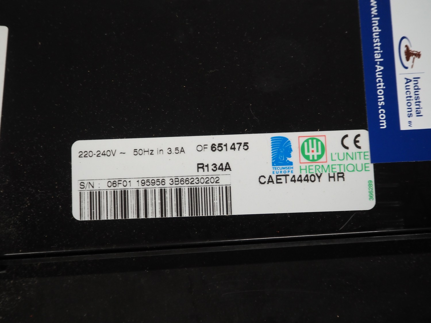 L'Unite Hermetique / Tecumseh condensing unit with cooling compressor, type: CAET4440Y HR, serial number: 06F01 195956 3B66230202, 220/240 V, 1 Ph, 50 Hz, 3.8 A, refrigerant: R134A, dimensions: 650 mm x 630 mm x 460 mm.