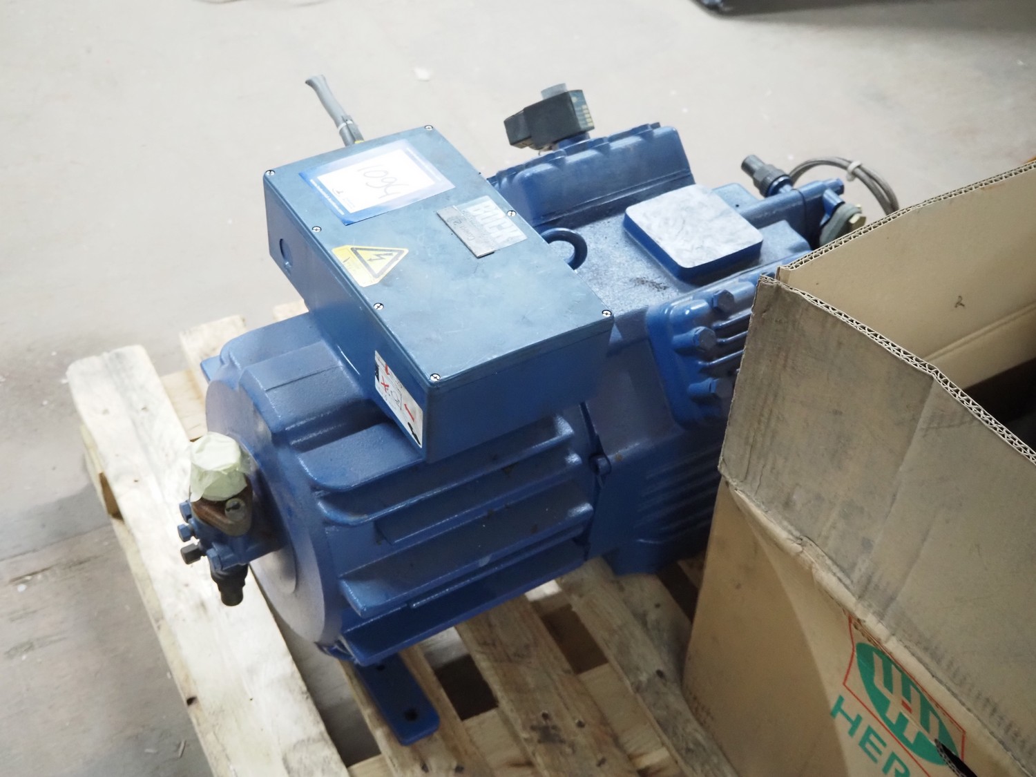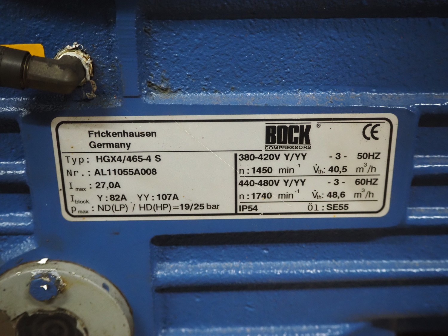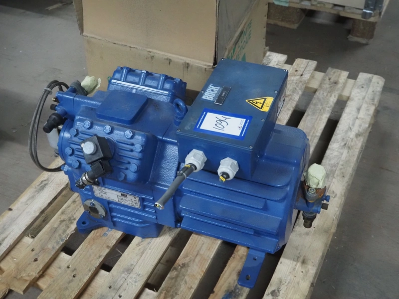 Bock Compressors cooling compressor, type: HGX4/465-4S, number: AL11055A008, capacity: 40.5/48.6 m³ per hour, dimensions: 750 mm x 400 mm x 400 mm.