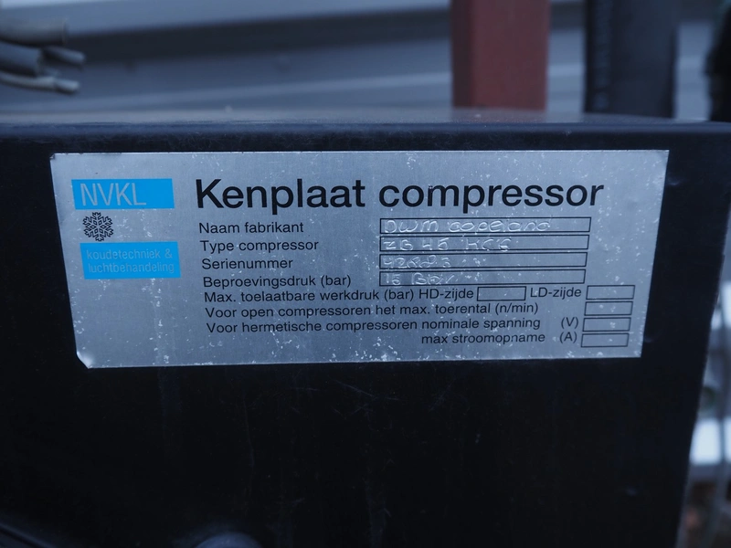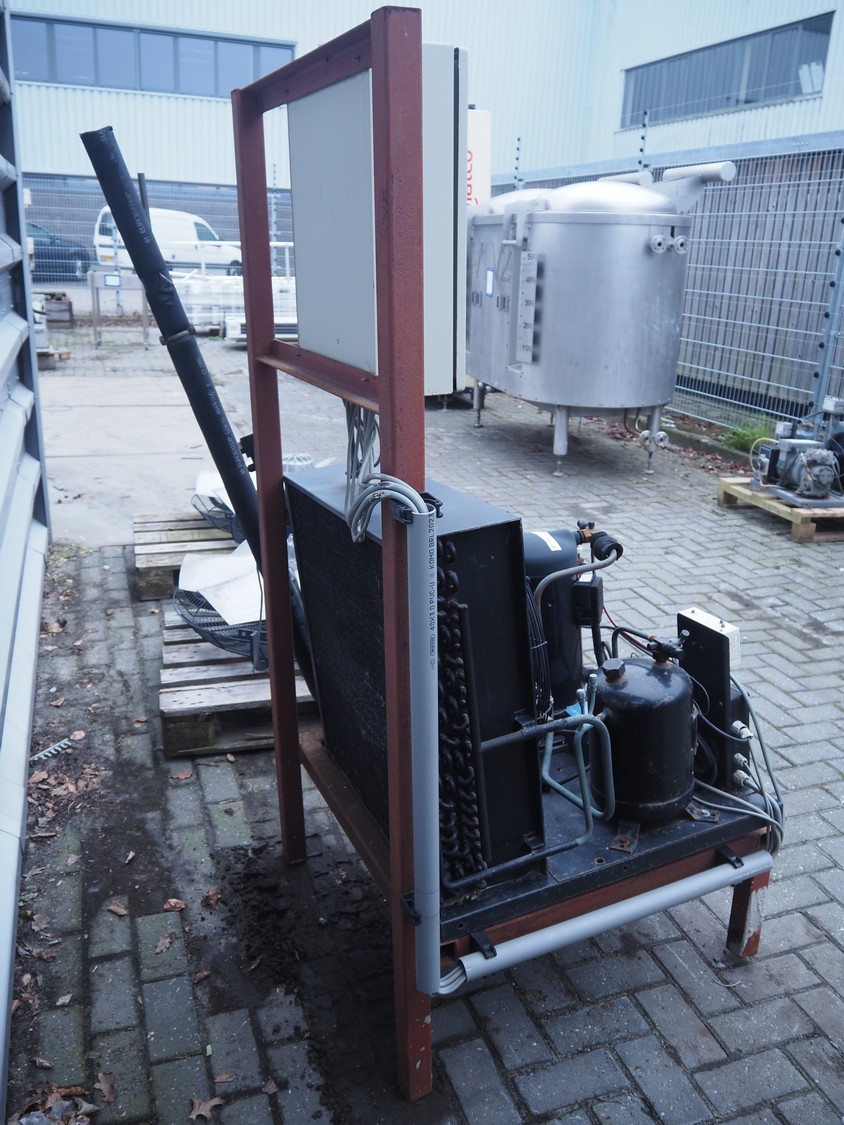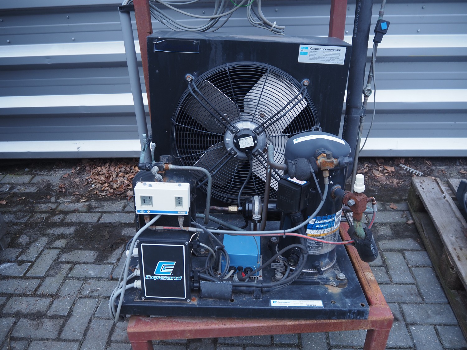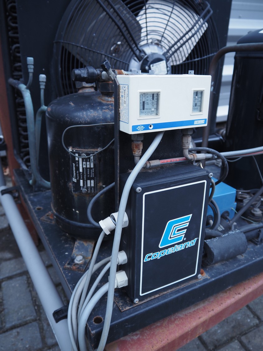 Copeland GmbH condensing and cooling unit, model: MC-M9-ZB45KE-TFD OHNE H/N, serial number: 42883, refrigerant: R 404a, 8 kg, dimensions: 1000 mm x 850 mm x 1770 mm.