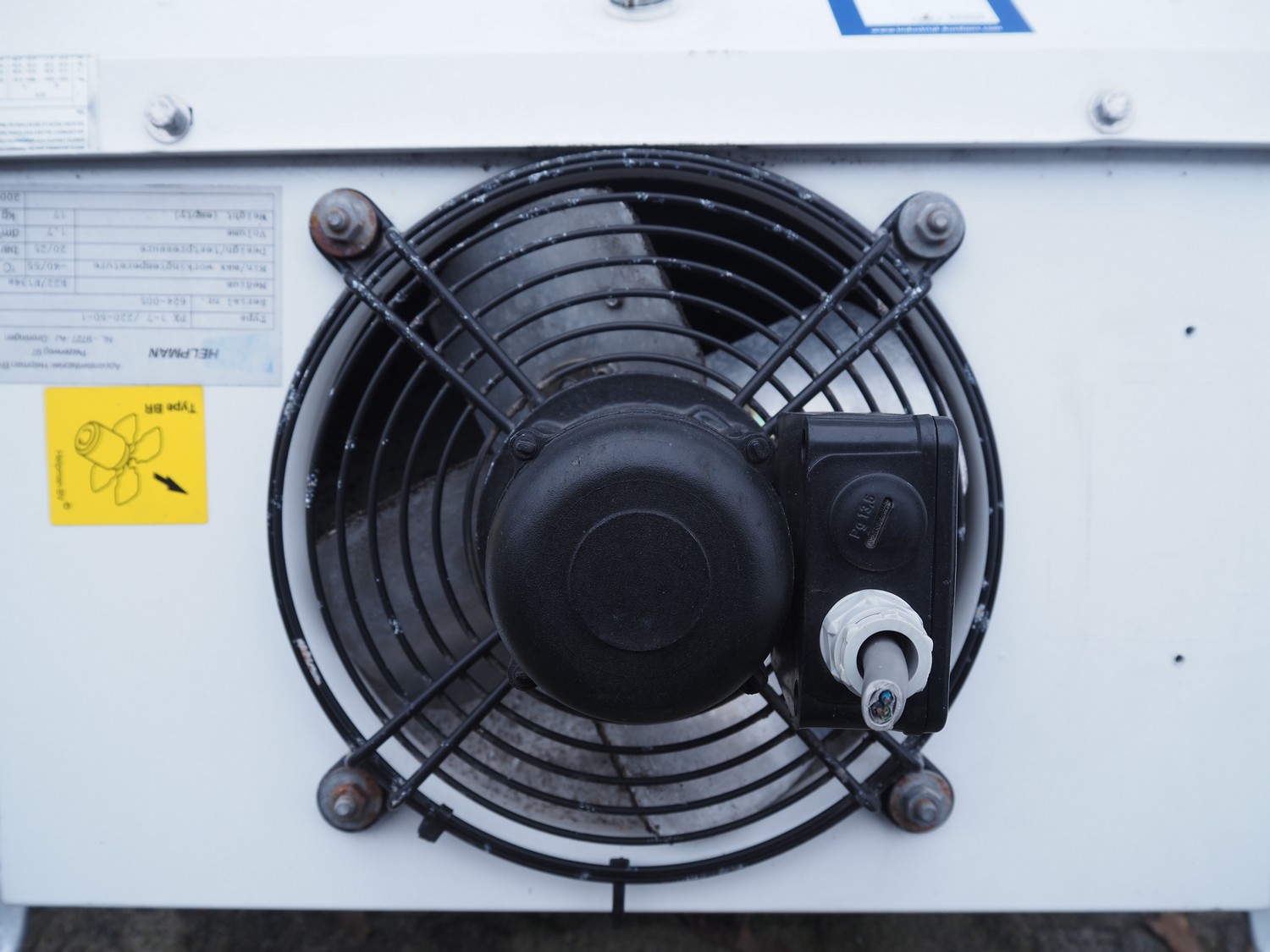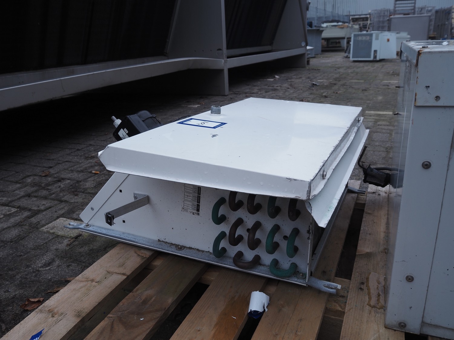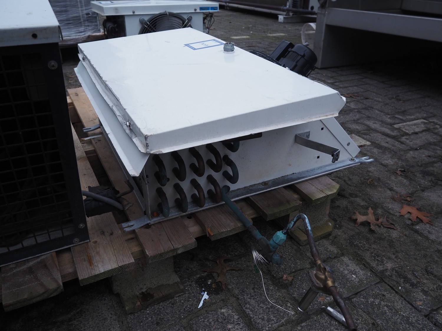 Helpman evaporator, type: PX 1-7, serial number: 624-005, year of construction: 2000, 220 V, 1 Ph, 50 Hz, refrigerant: R22 / R134a, dimensions: 750 mm x 670 mm x 270 mm.
