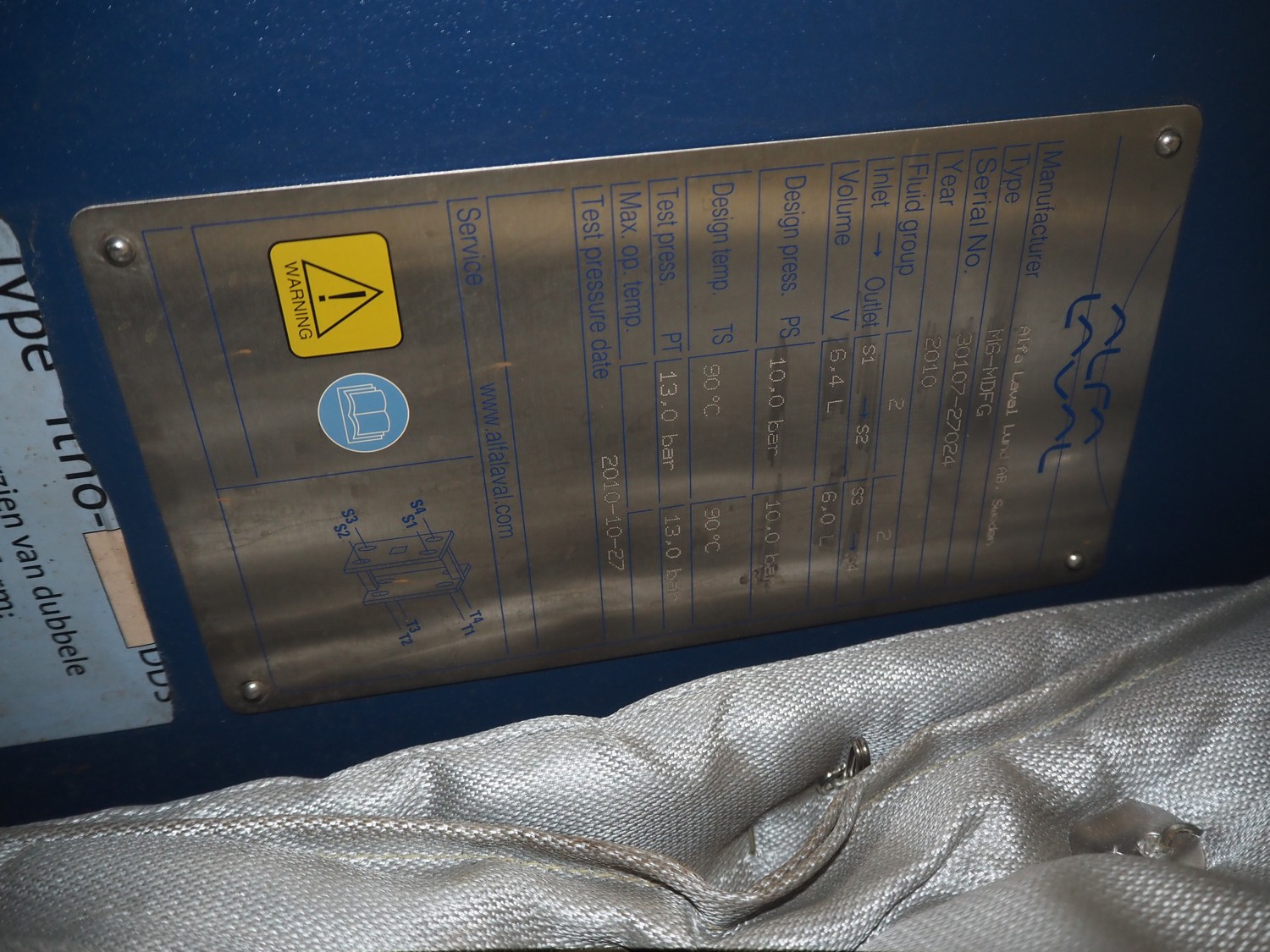 Alfa Laval heat exchanger, type: M6-MDFG, serial number: 30107-27024, year of construction: 2010, volume: 6.4 / 6.0 liter, dimensions: 970 mm x 860 mm x 370 mm.