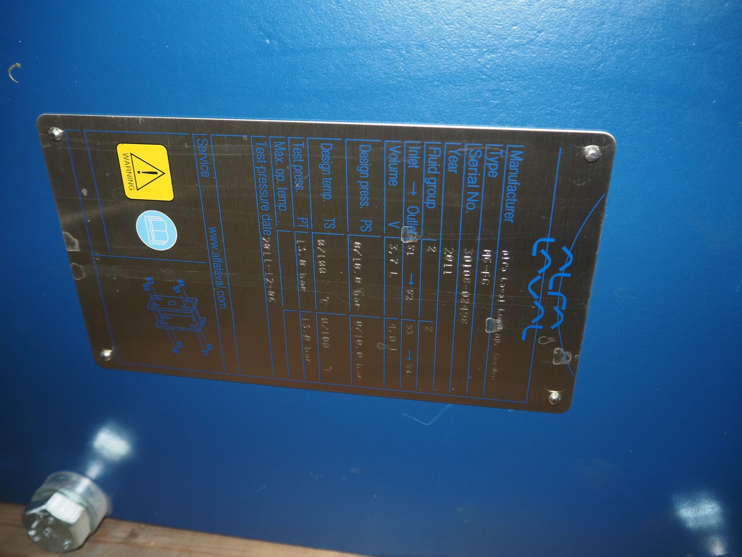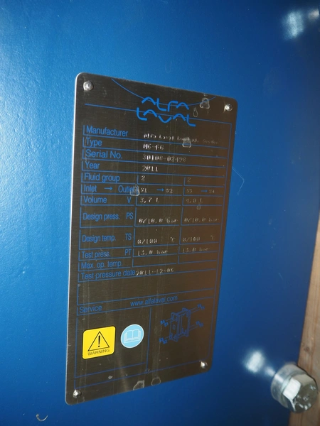 Alfa Laval heat exchanger, type: M6-FG, serial number: 30108-02428, year of construction: 2011, volume: 3.7 / 4.0 liter, dimensions: 1120 mm x 740 mm x 320 mm.