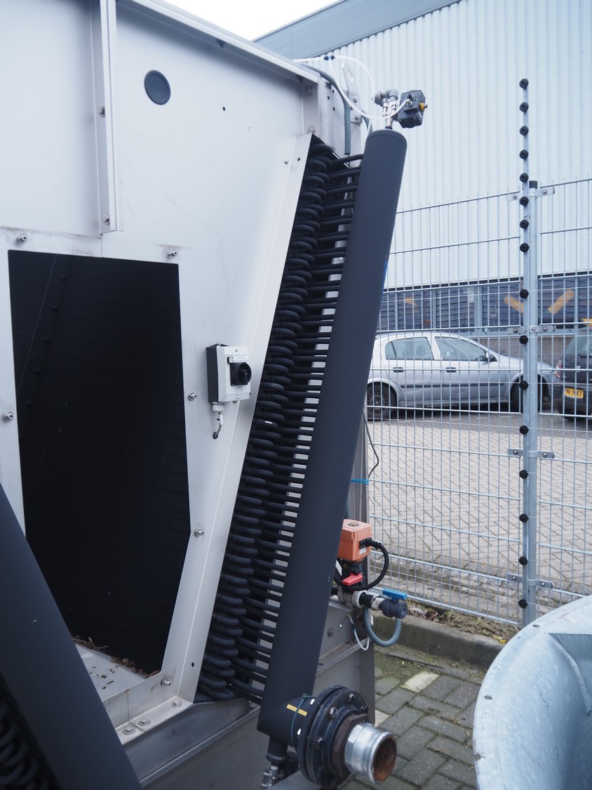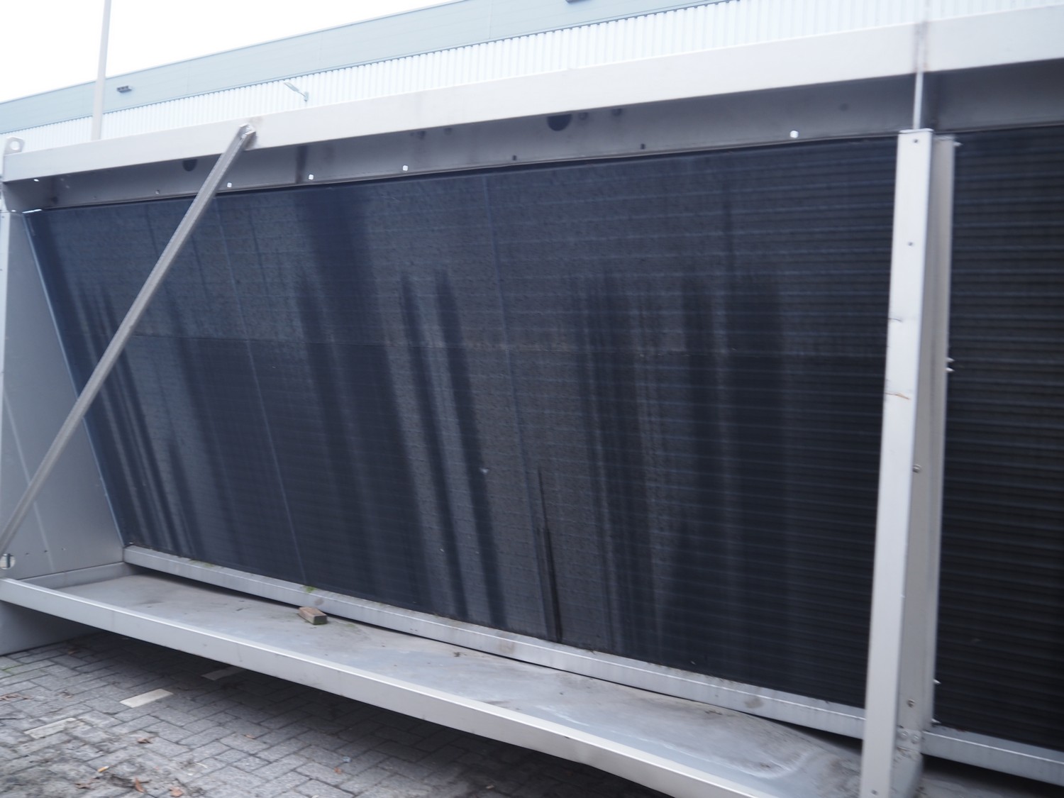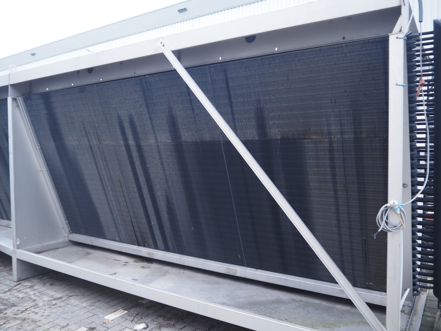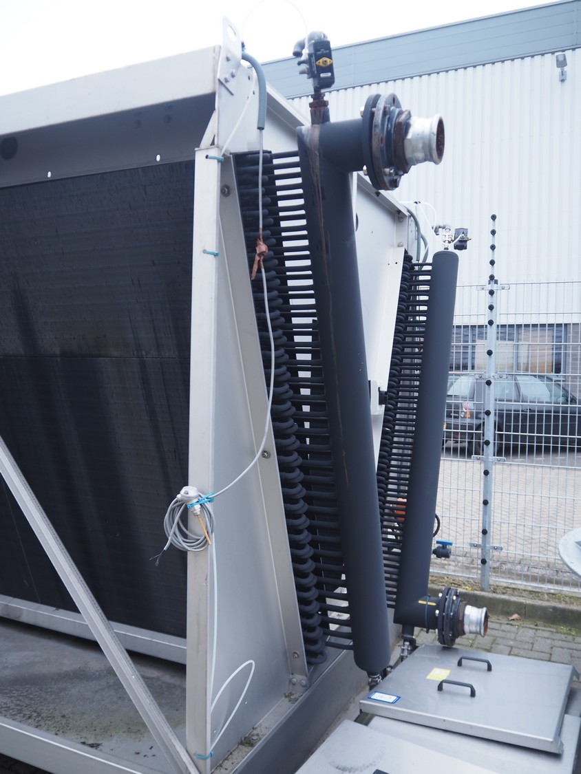 Chiller, dimensions: 9750 mm x 2200 mm x 2500 mm. Including 3 fans, dimensions: (3x) Ø 2000 mm x 1150 mm.