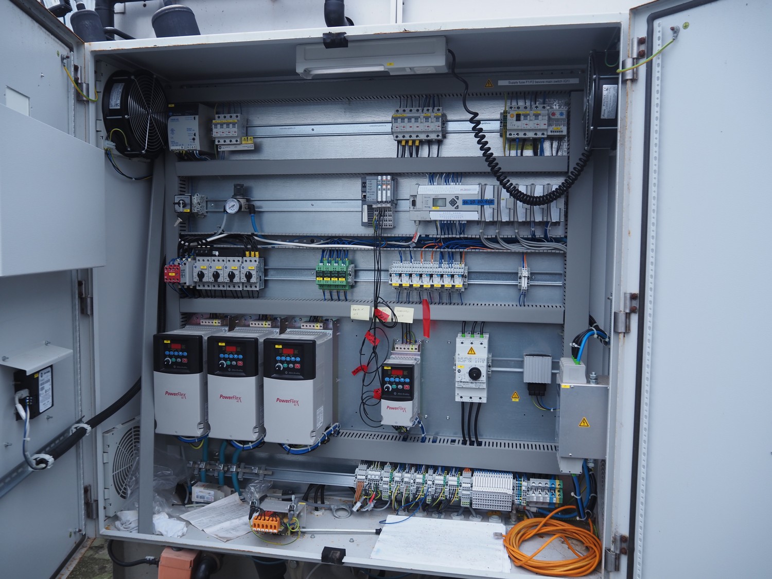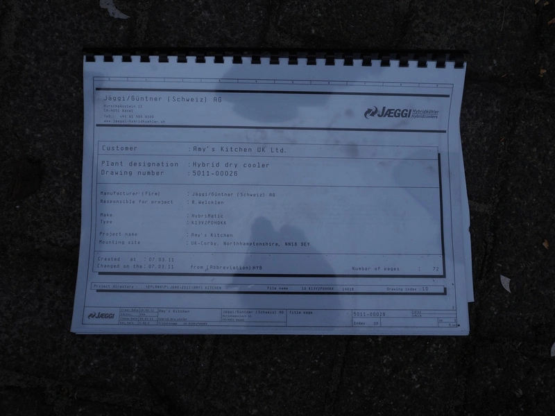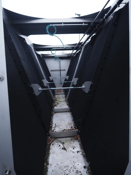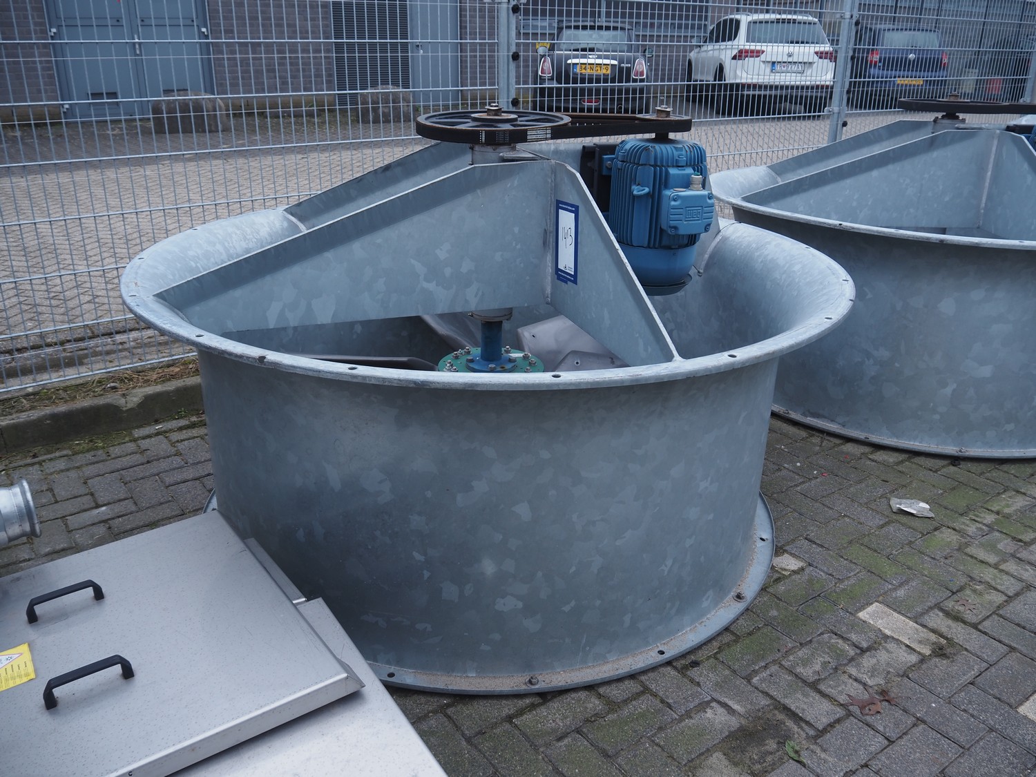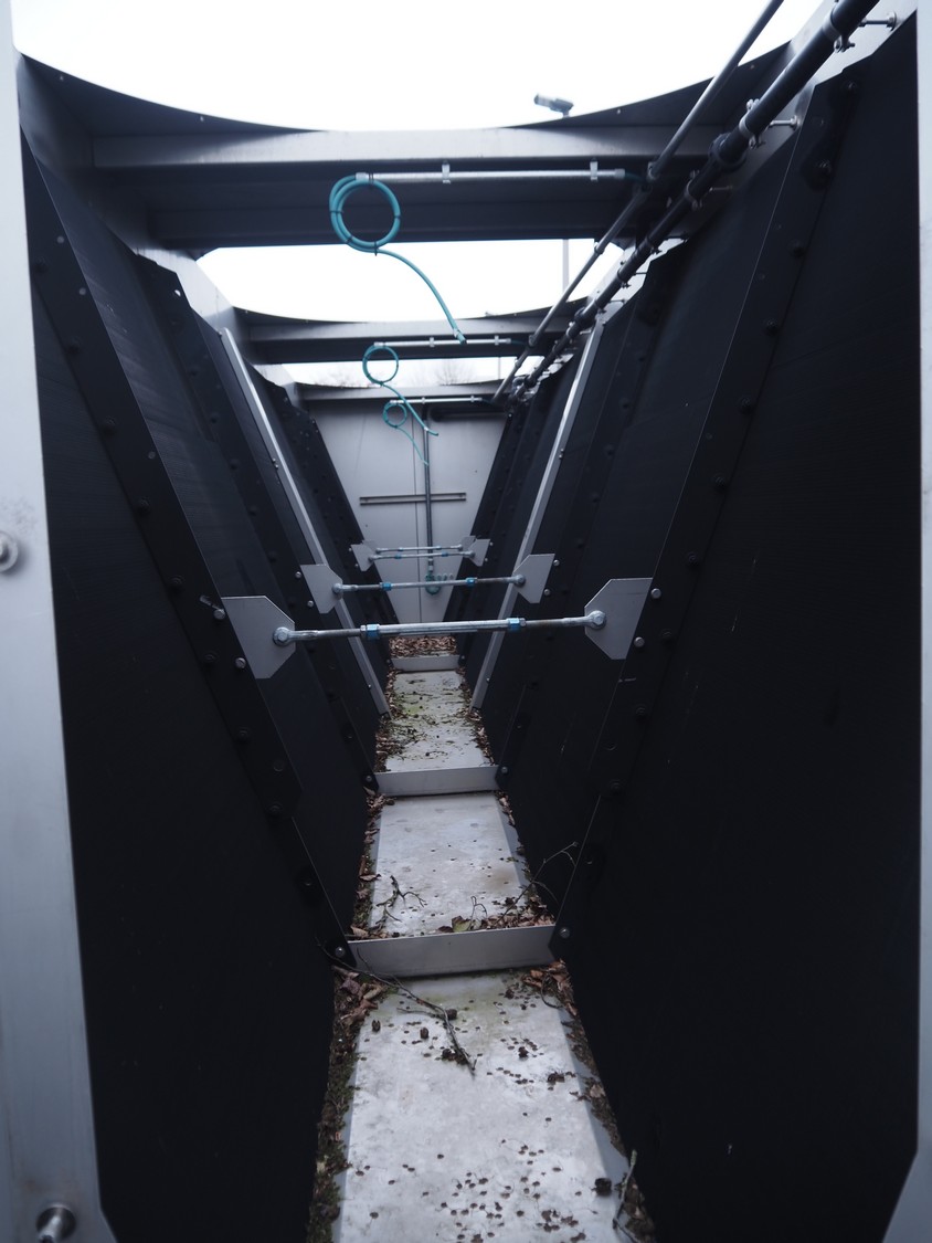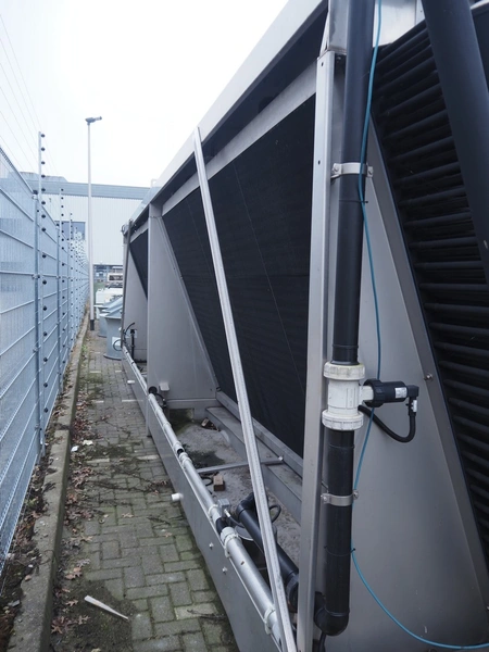 Chiller, dimensions: 9750 mm x 2200 mm x 2500 mm. Including 3 fans, dimensions: (3x) Ø 2000 mm x 1150 mm.