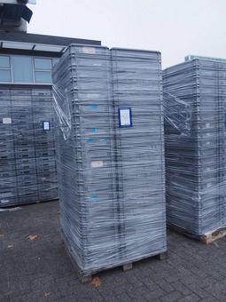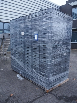 Pallet with 100 plastic crates, dimensions each crate: 600 mm x 400 mm x 110 mm, total dimensions: 1200 mm x 800 mm x 2400 mm.€ 200,000 bids17/02/2026 15:50 -