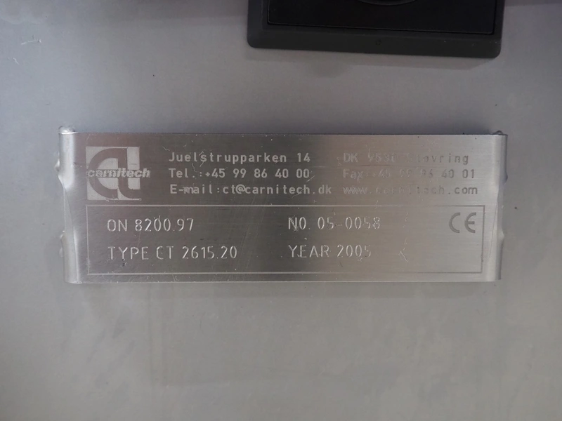 Carnitech pin bone remover, type: CT 2615.20, number: 05-0058, year of construction: 2005, plastic belts, belt width: (2x) 270 mm, total dimensions: 1300 mm x 900 mm x 1270 mm.