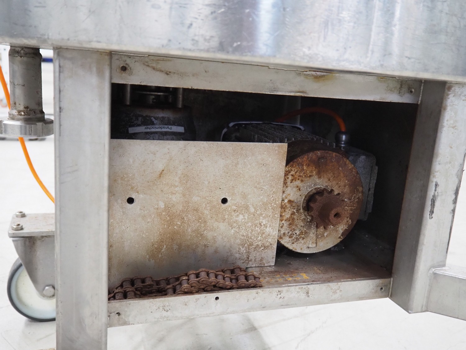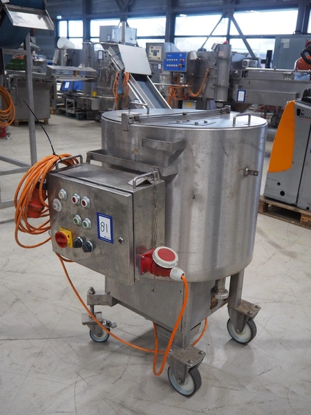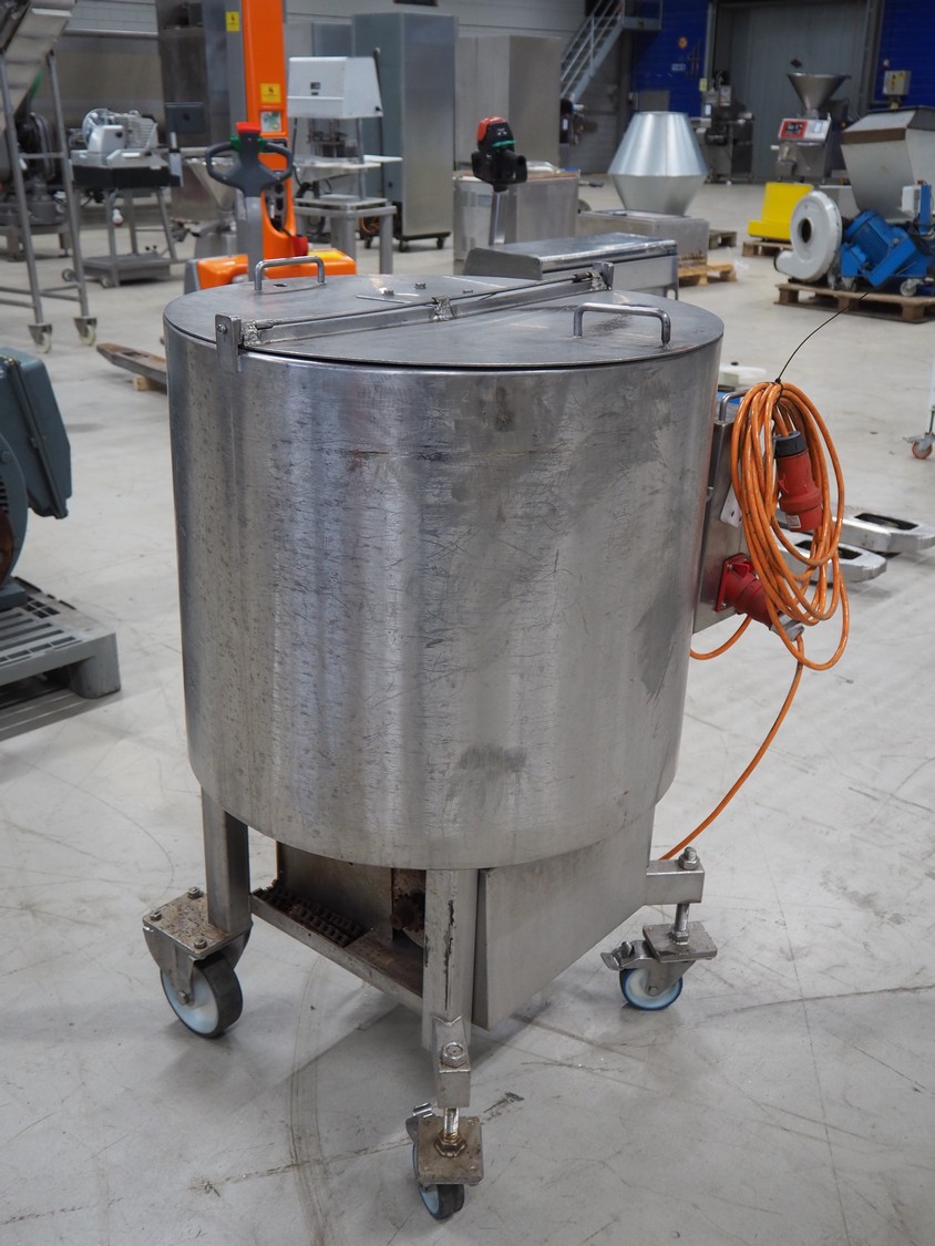 Mobile brine mixer, inside dimensions: ø 680 mm x 600 mm, total dimensions: 980 mm x 720 mm x 1160 mm.