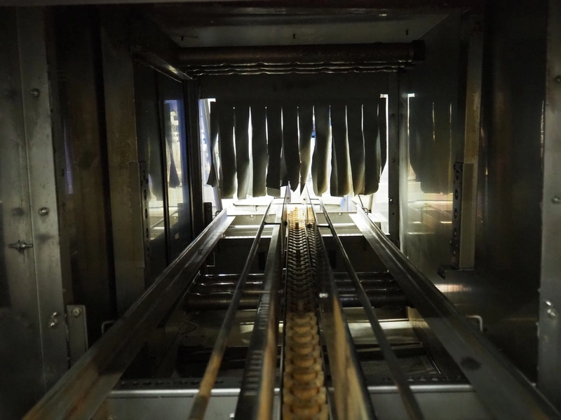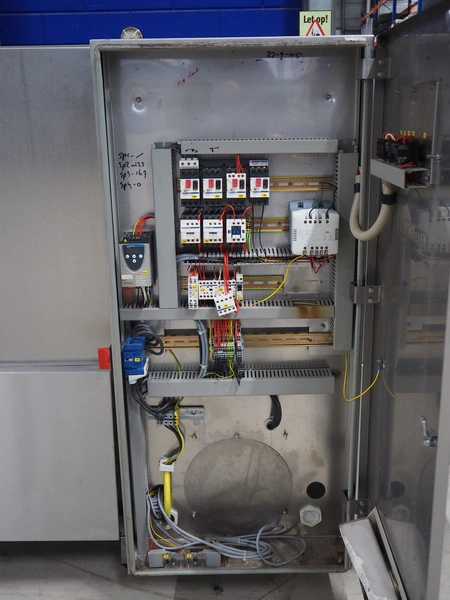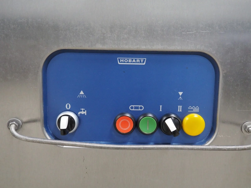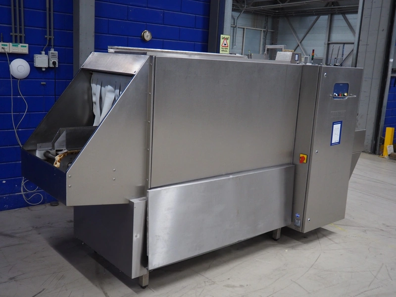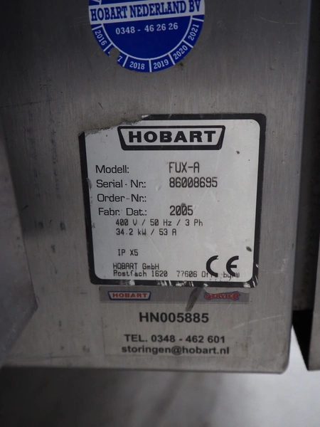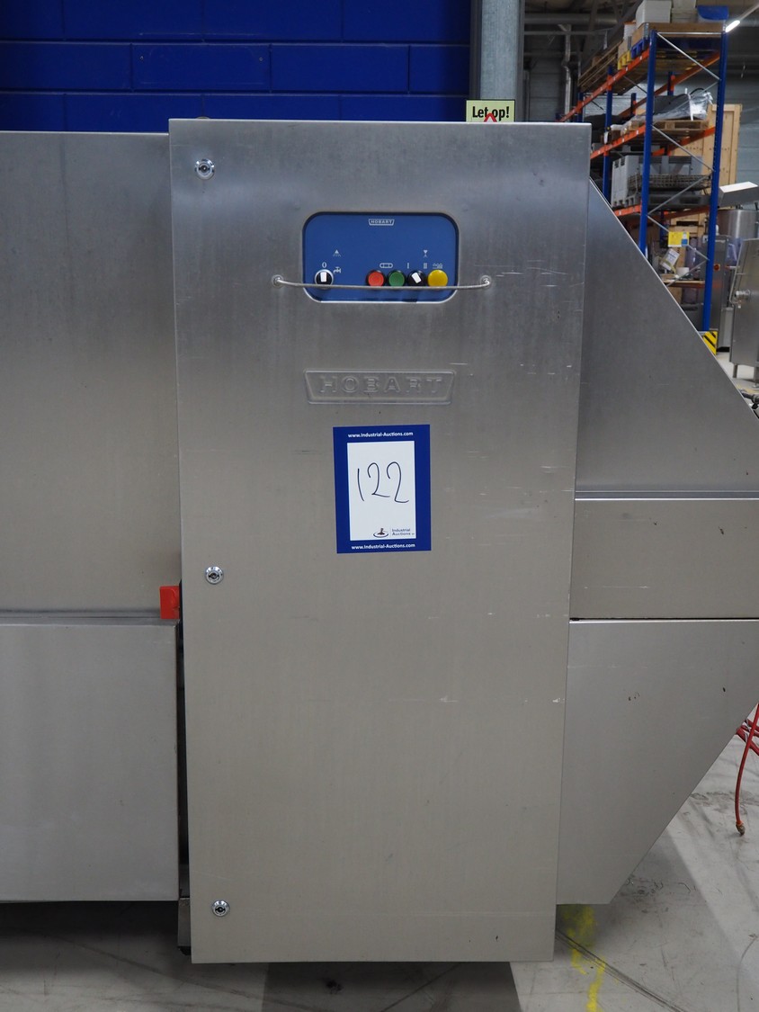 Hobart crate washing machine, model: FUX-A, serial number: 86008695, year of construction: 2005, 400 V, 3 Ph, 50 Hz, 34.2 kW, 53 A, dimensions: 3050 mm x 1000 mm x 1550 mm.
