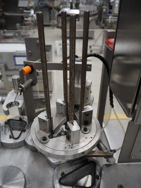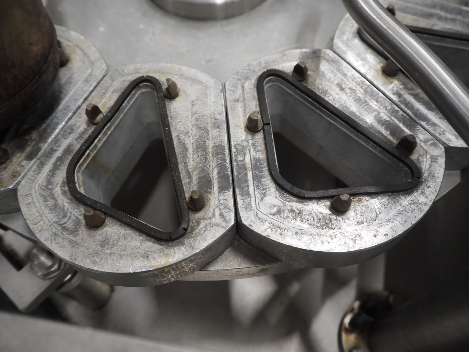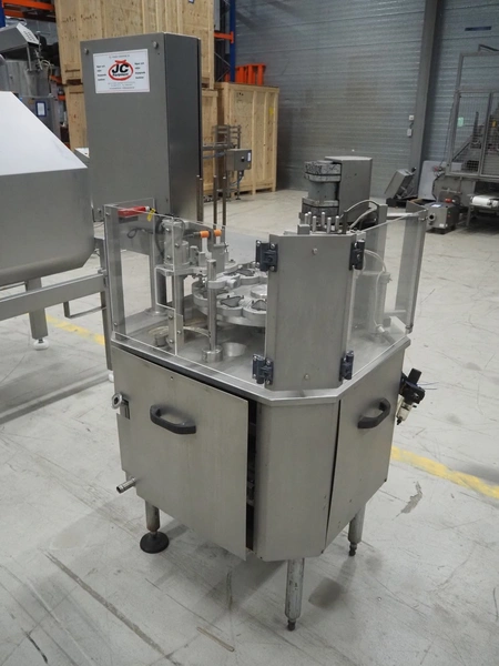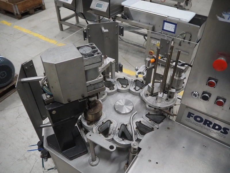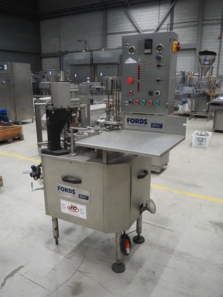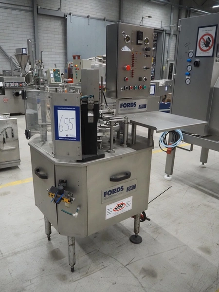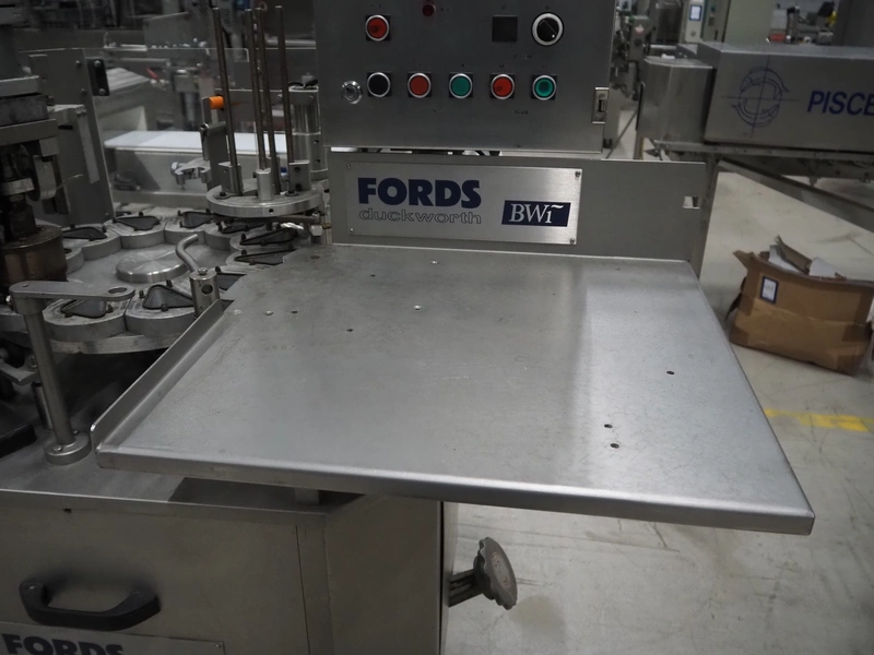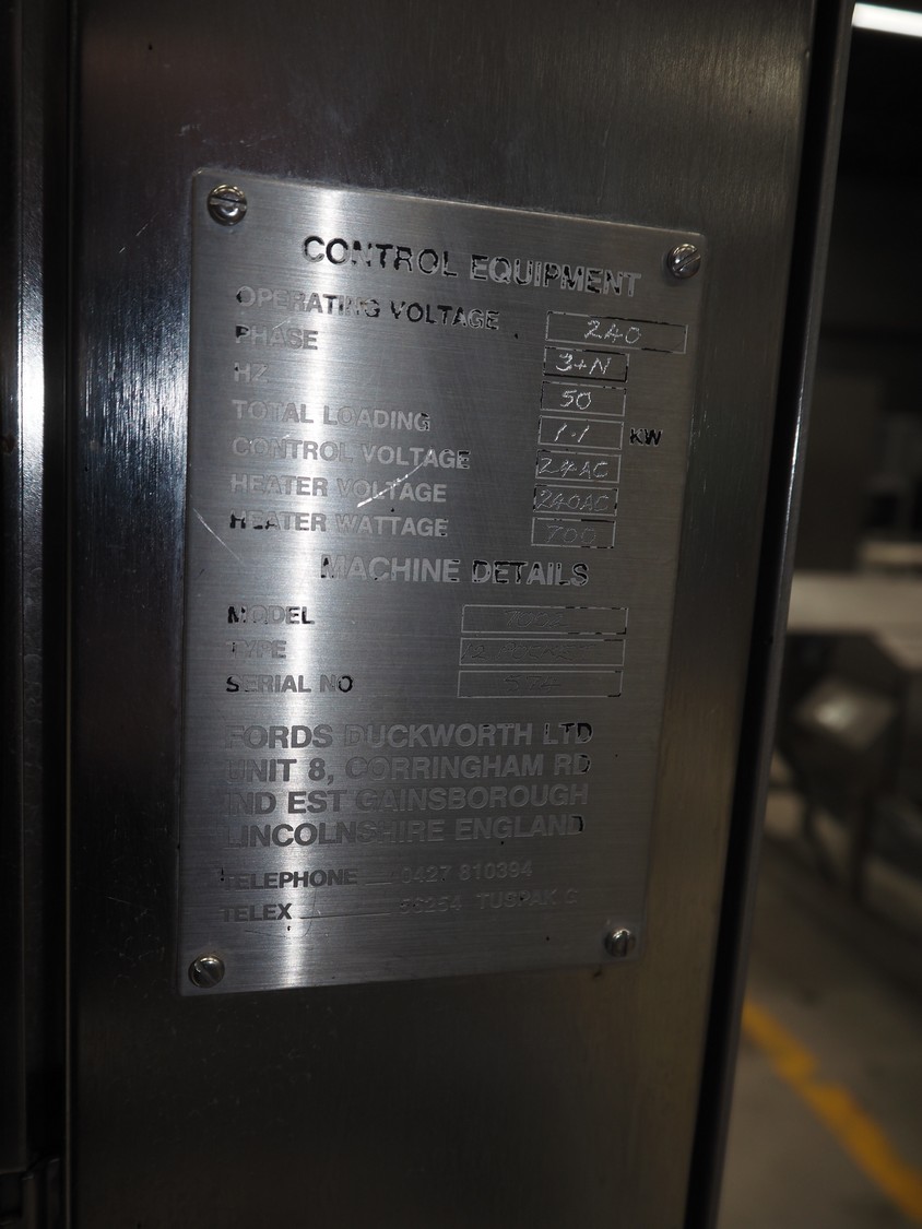 Fords Duckworth pocket filling and sealing machine, model: 1002, serial number: 574, 240 V, 3 Ph, 50 Hz, 1.1 kW, dimensions dye: 90 mm x 40 mm, total dimensions: 1150 mm x 900 mm x 1750 mm.