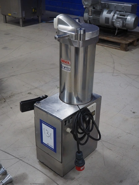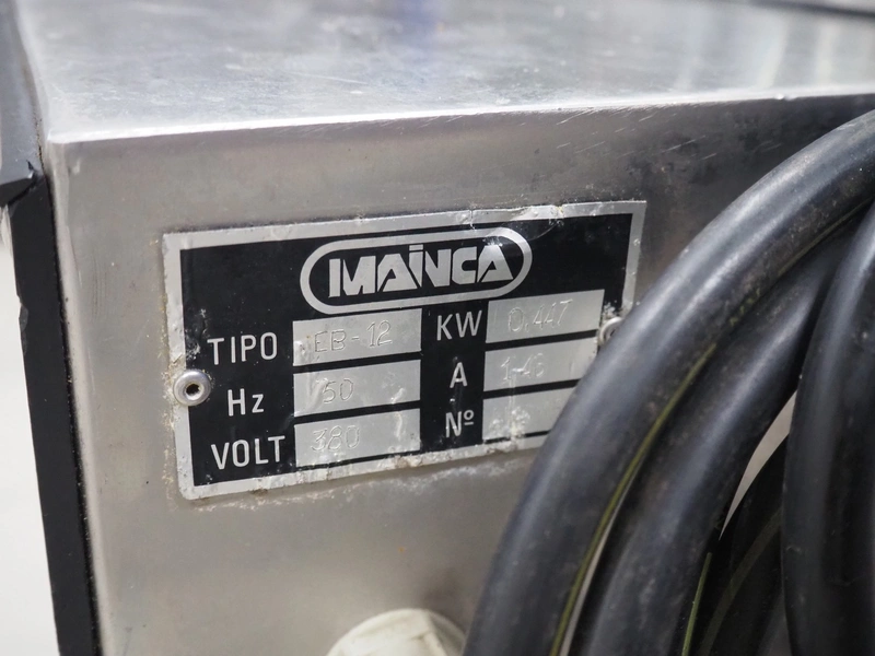 Mainca piston filler, type: EB-12, 380 V, 50 Hz, dimensions: 500 mm x 350 mm x 1000 mm.