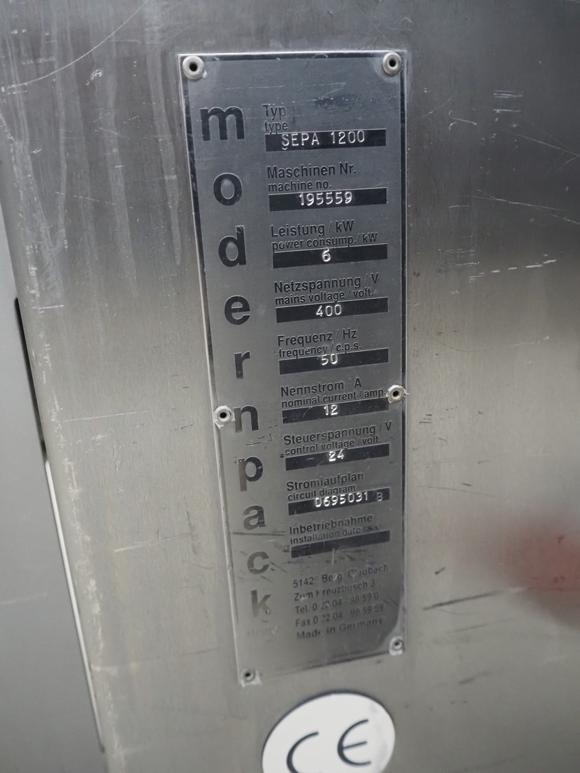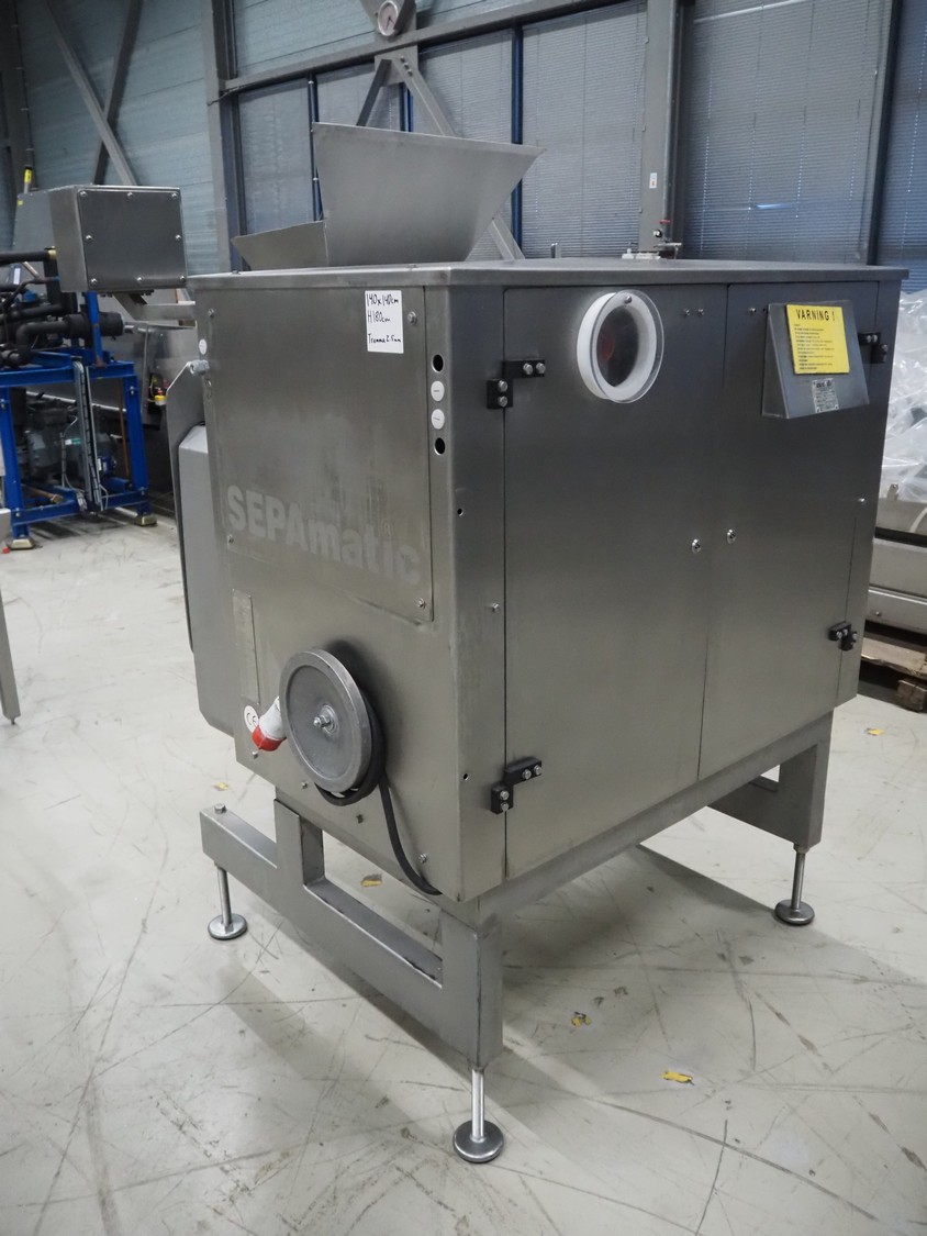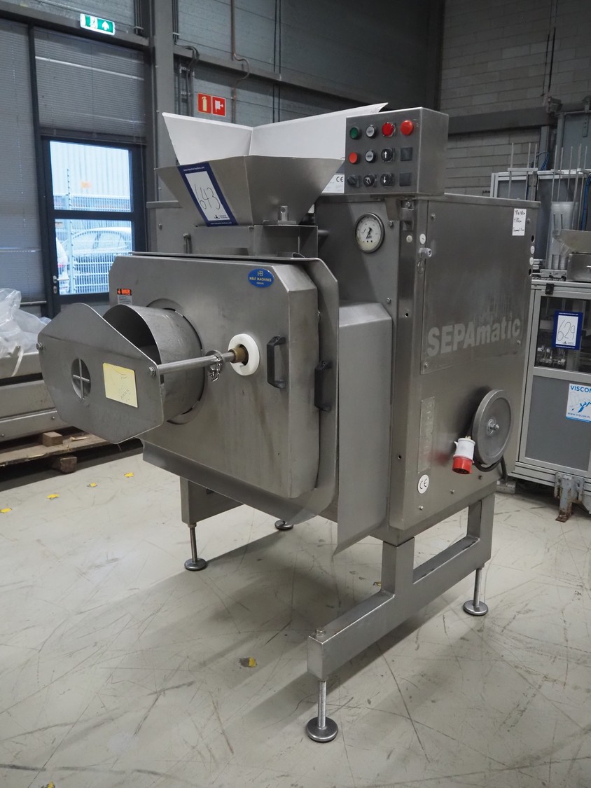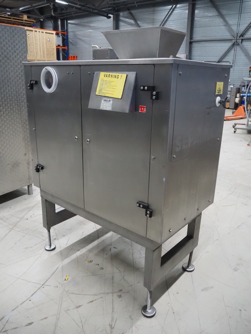 Sepamatic separator, type: SEPA 1200, machine number: 195559, 400 V, 50 Hz, 6 kW, diameter drum: 300 mm, diameter perforations: 2 mm, total dimensions: 1300 mm x 1170 mm x 1800 mm.