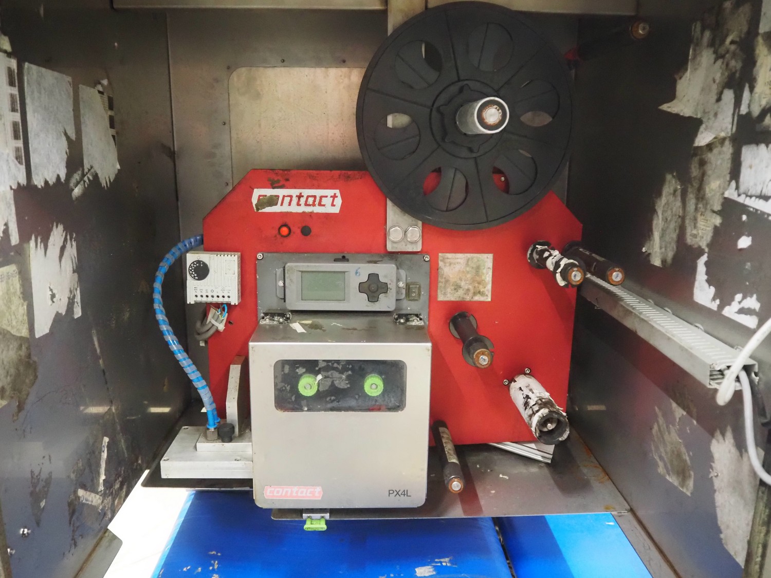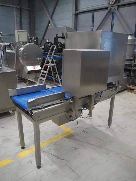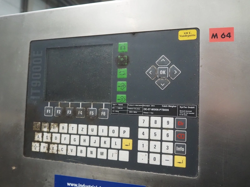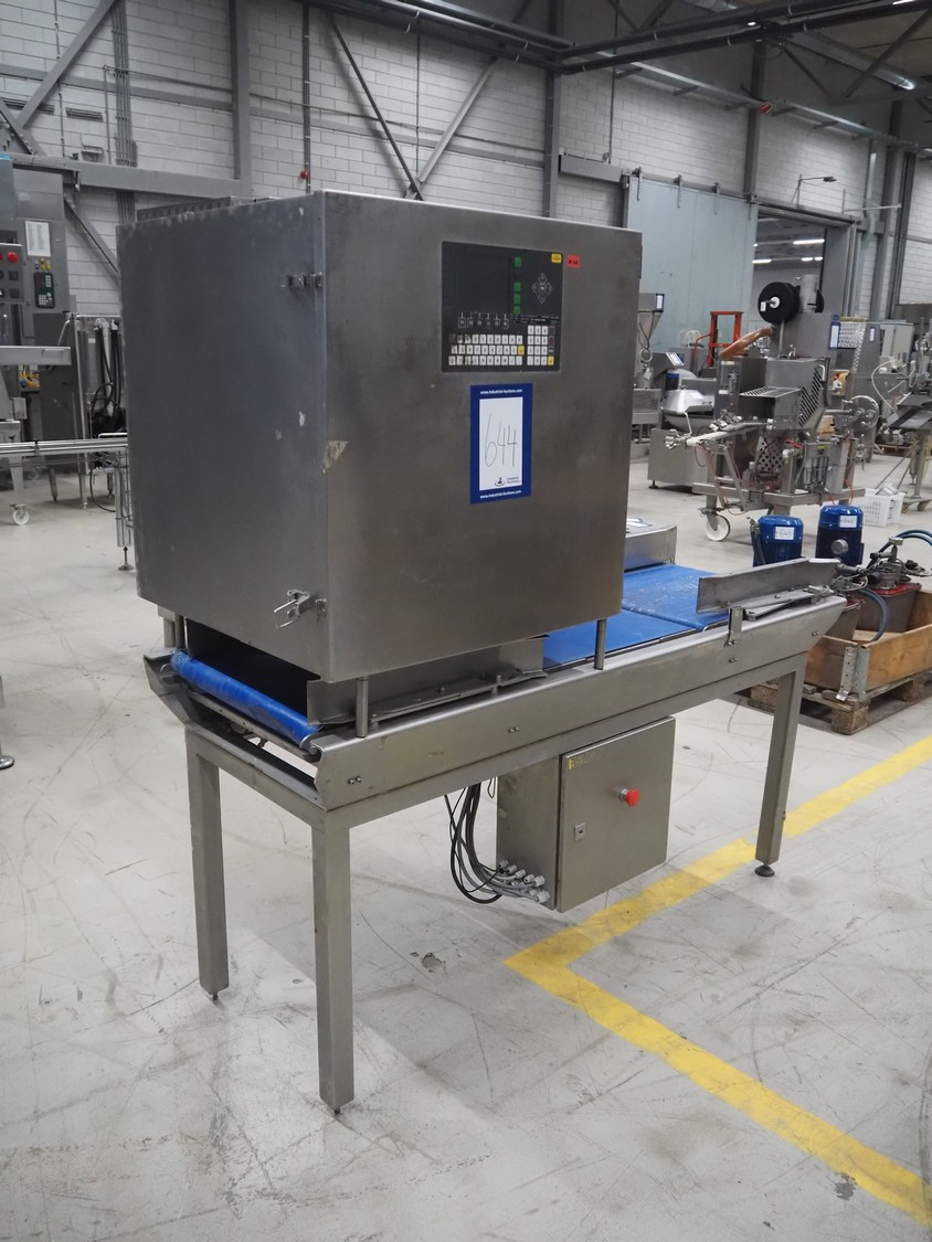 Checkweigher with labeller, plastic belts, belt width: 500 mm, total dimensions: 1700 mm x 900 mm x 1670 mm.
