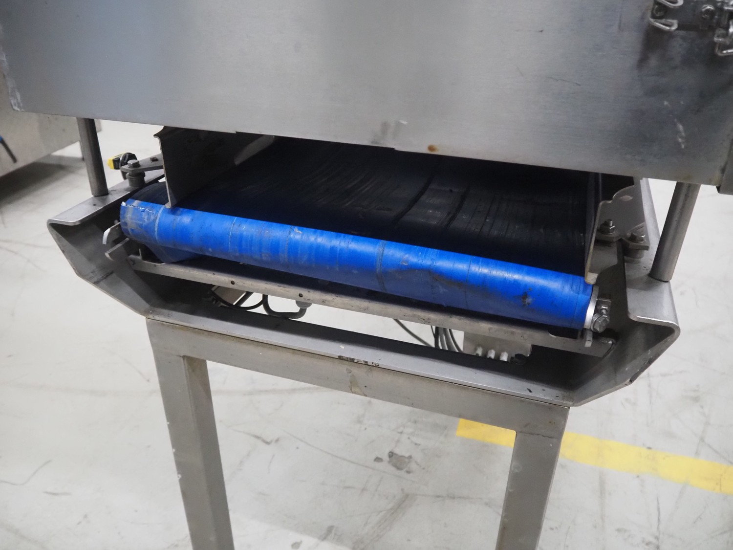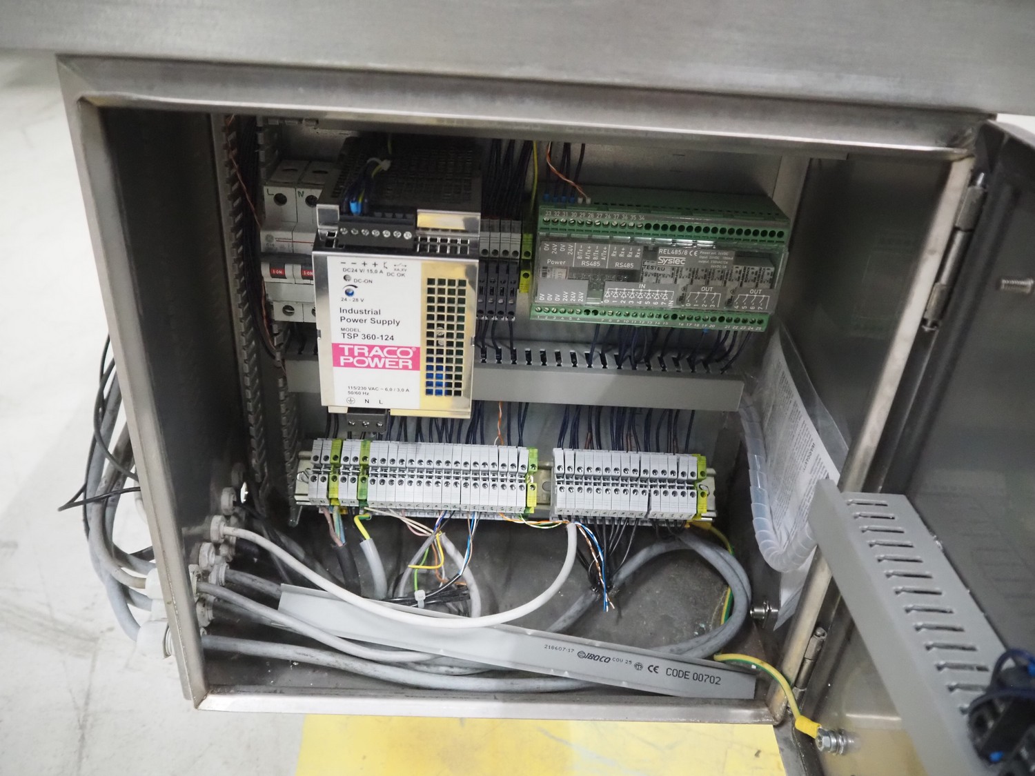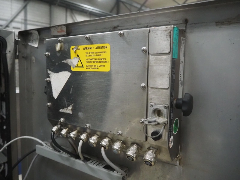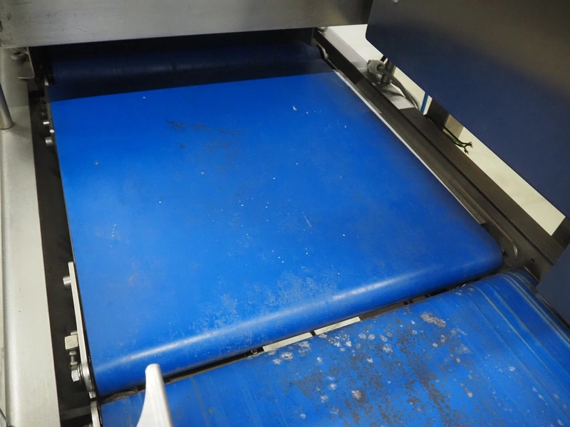 Checkweigher with labeller, plastic belts, belt width: 500 mm, total dimensions: 1700 mm x 900 mm x 1670 mm.